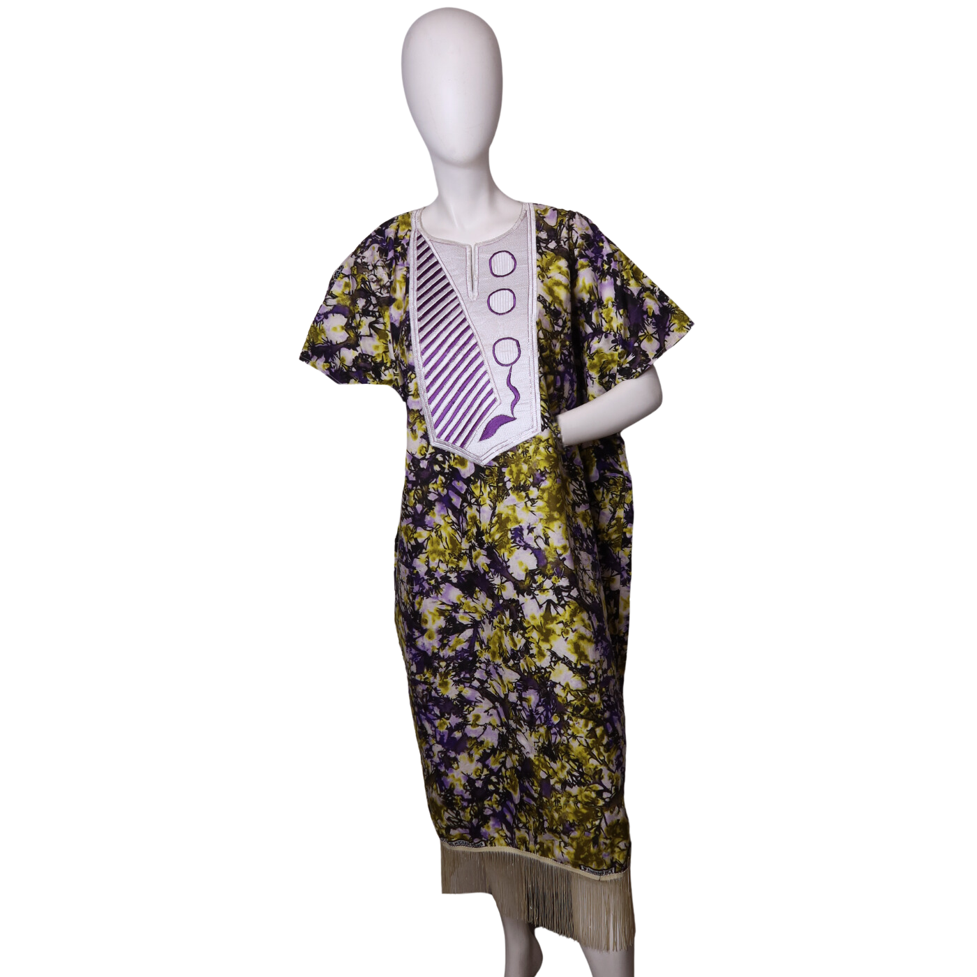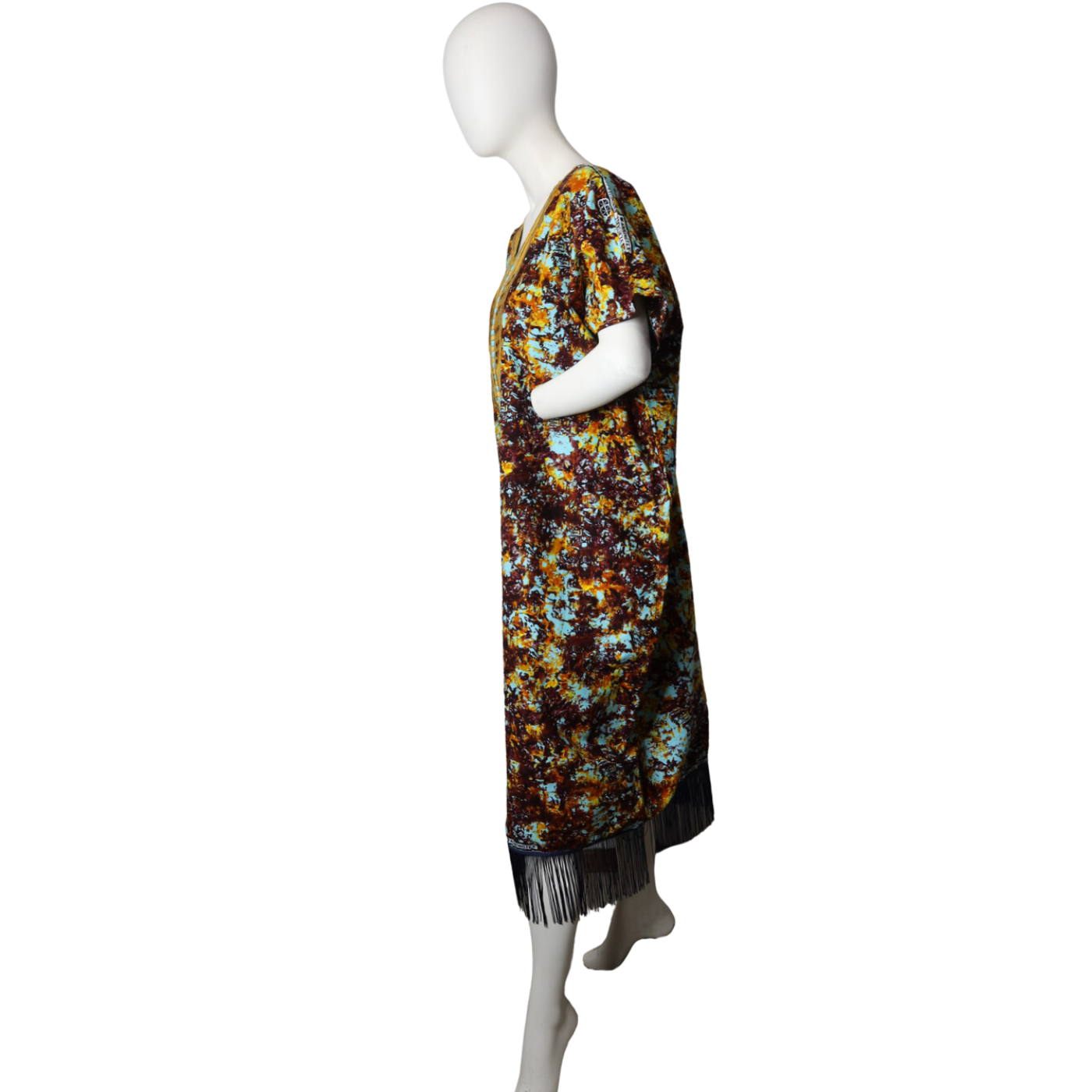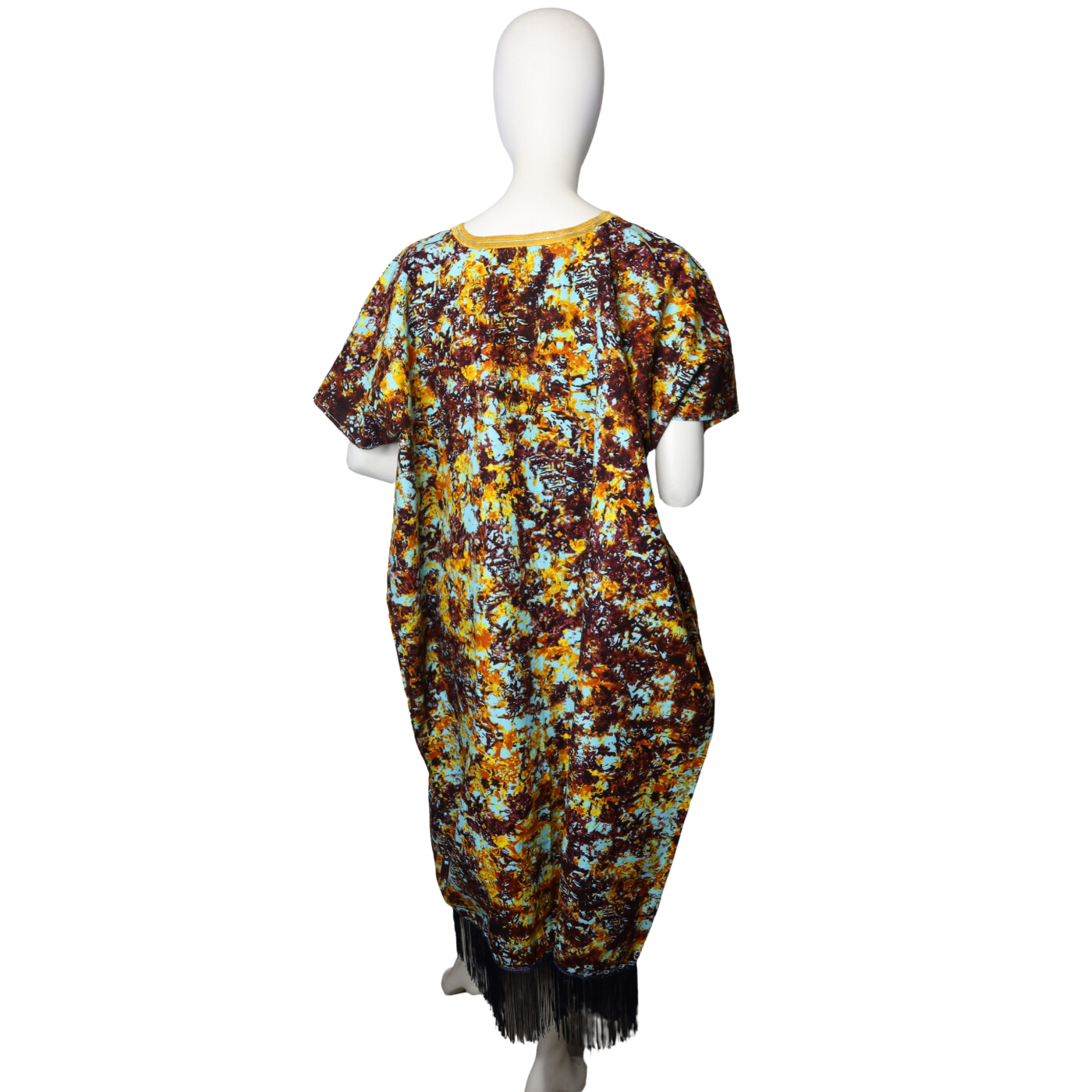 Unleash your bold side with the Africo dress. This long, flowing design features a dynamic tassel base that commands attention with every step. The short sleeves add a sharp contrast, creating a fearless look that’s perfect for making an unforgettable impression.
