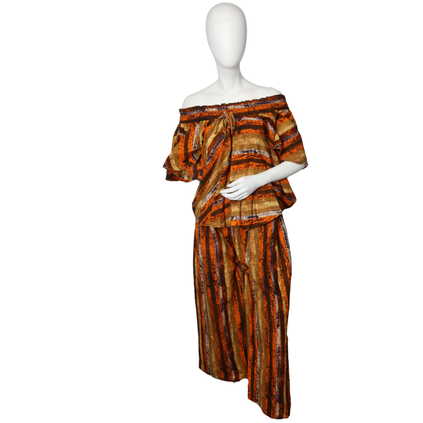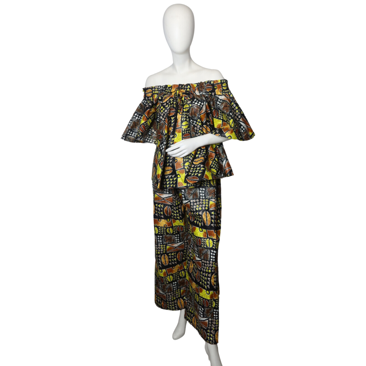 The Boubo 2 Piece ensemble combines a chic off-the-shoulder top with sleek pants featuring functional pockets. This set balances refined style with practicality, making it a versatile choice for both casual and dressier occasions. Its thoughtful design ensures comfort without compromising on elegance.