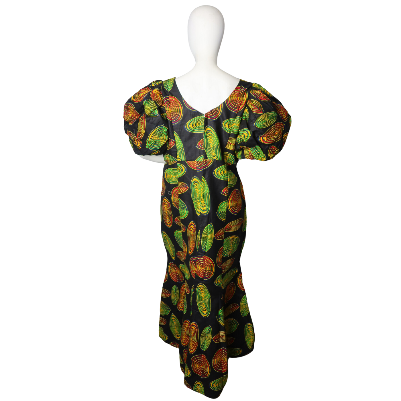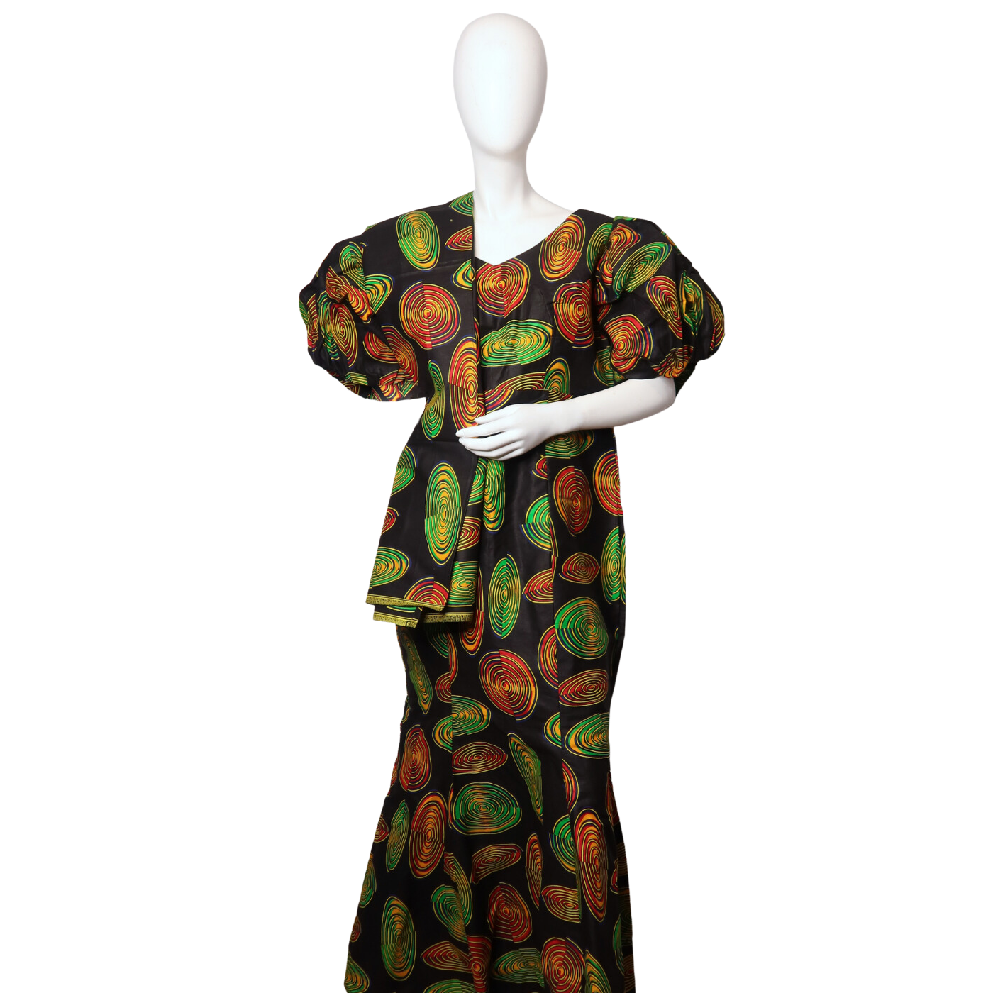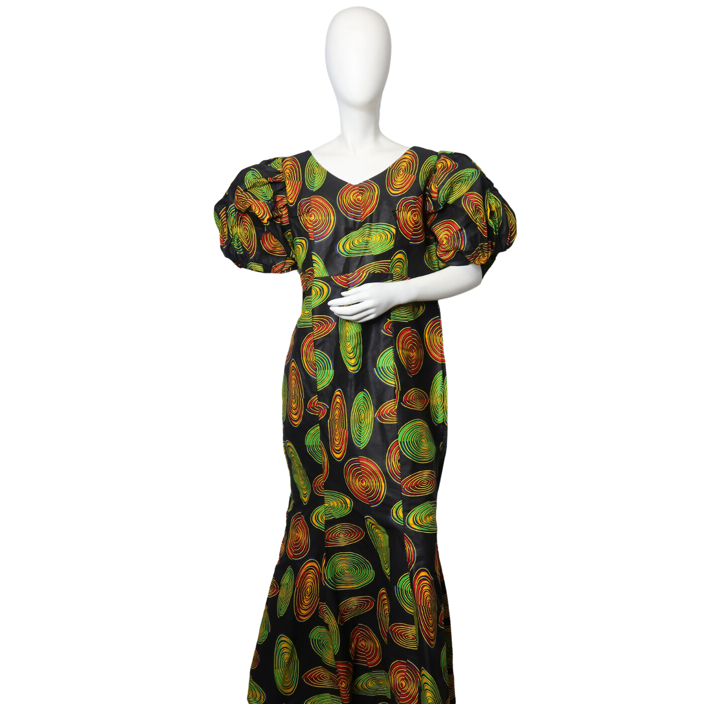 Cyrclella features striking puffed sleeves and a flowing long dress that exudes bold confidence. Paired with a stylish head scarf, this ensemble is perfect for those who dare to stand out and make a memorable impression.