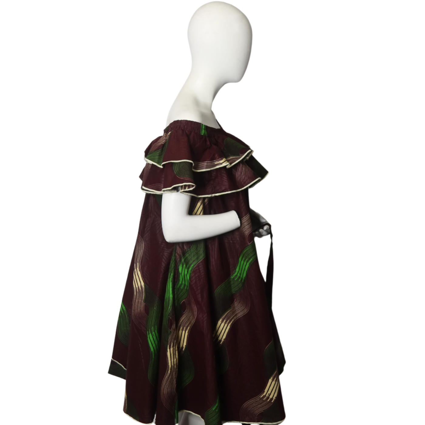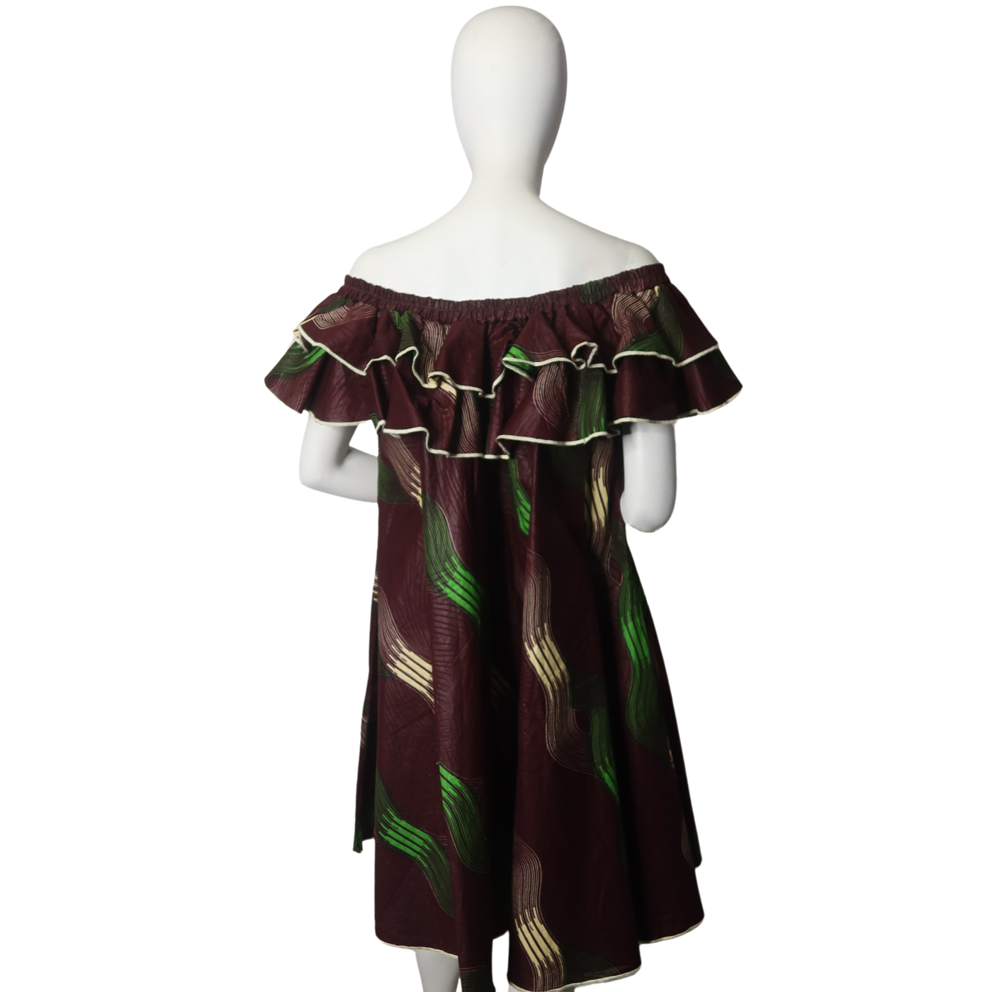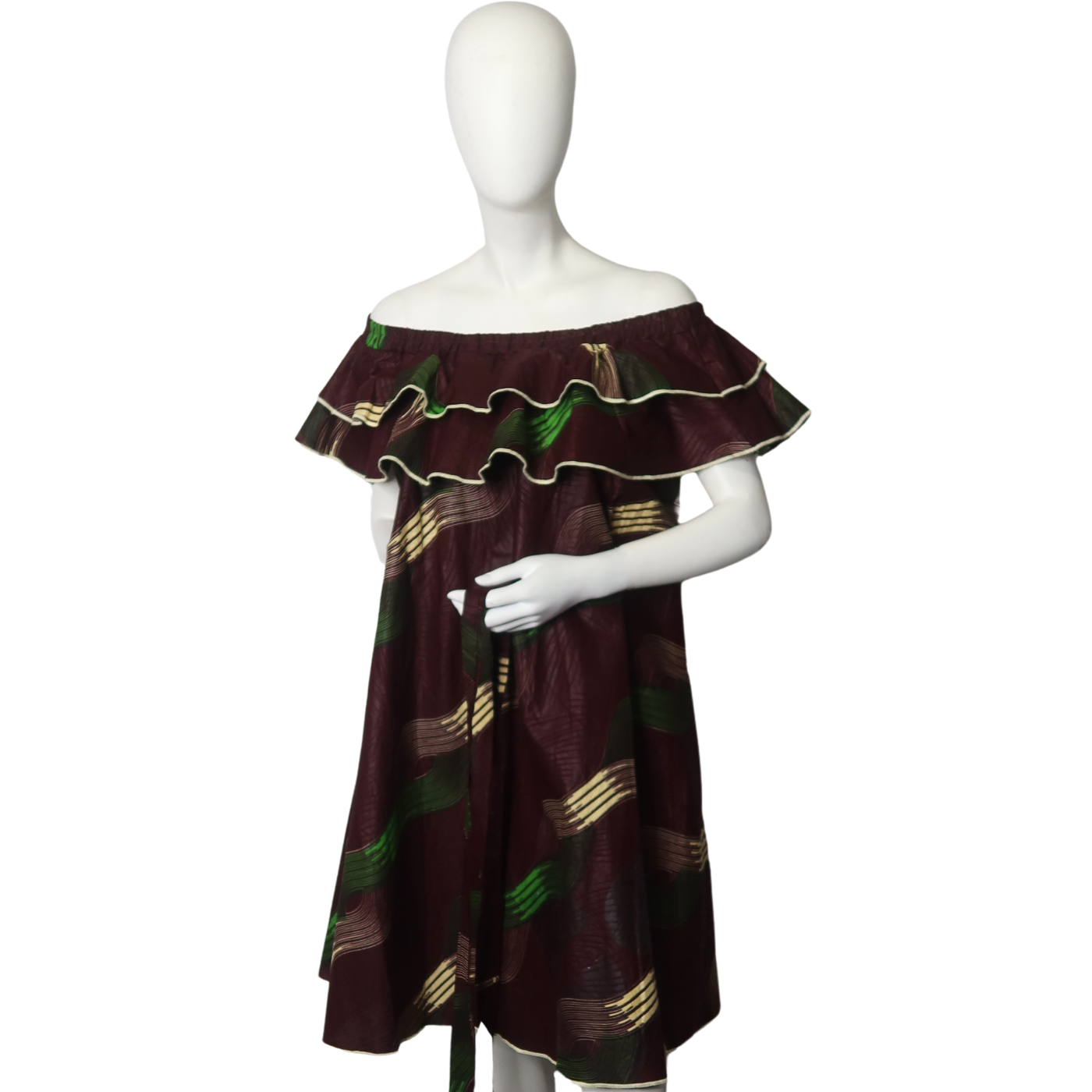 The Dira dress features stylish double ruffles on an off-shoulder design, creating a graceful and trendy silhouette. Its knee-high length adds a touch of elegance, perfect for making a statement at any event. This dress combines modern flair with class.