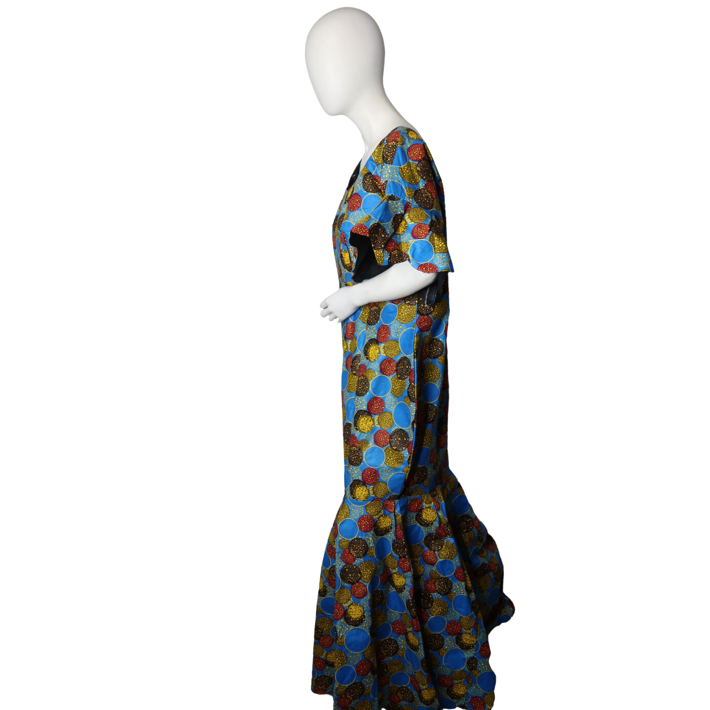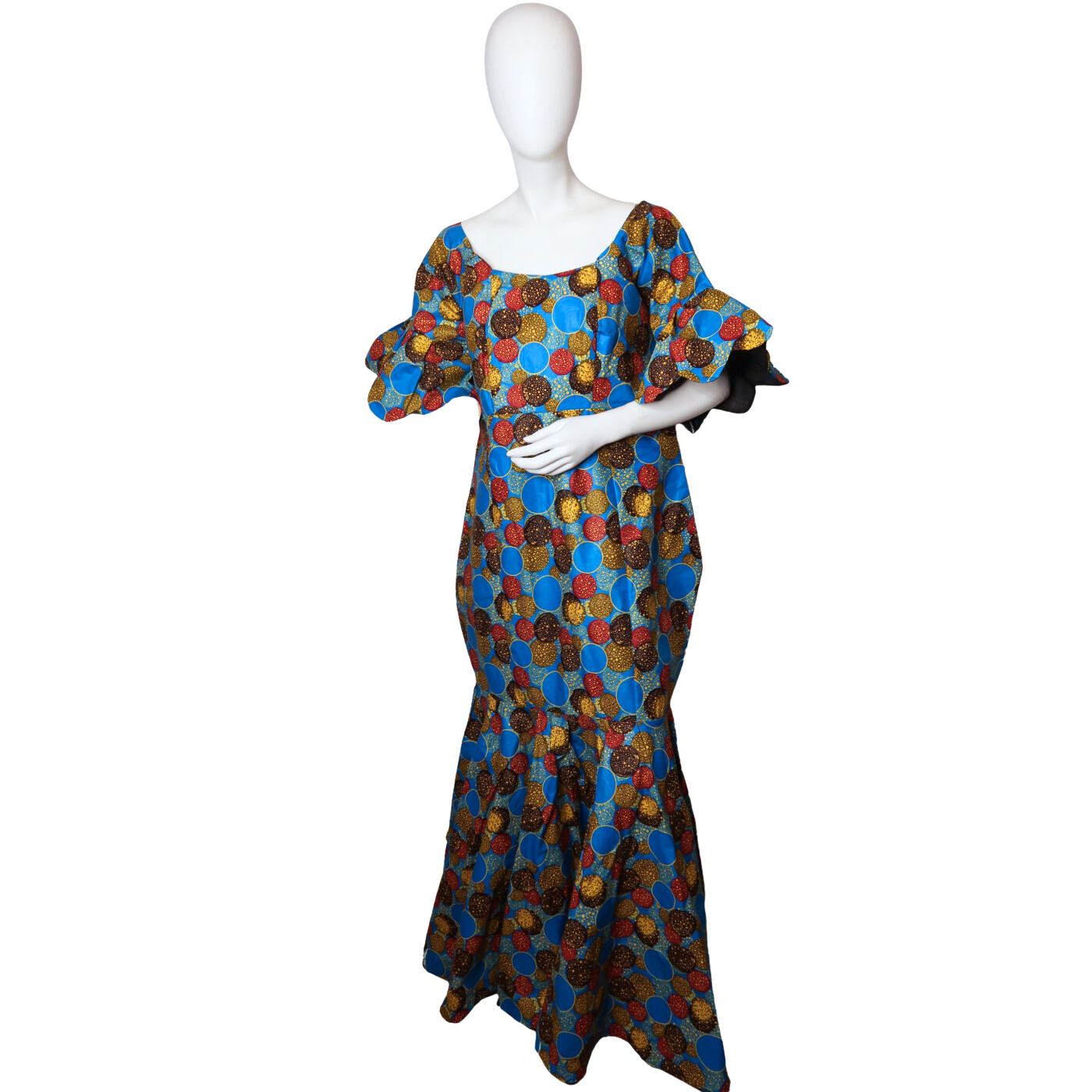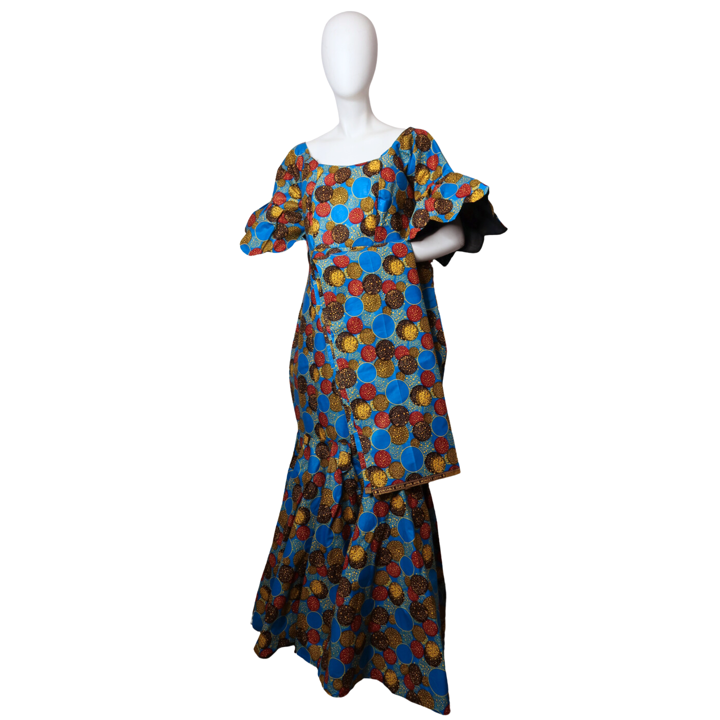 The Dooter dress redefines bold fashion with its tulip-cut sleeves and flowing long silhouette. Paired with a sleek head scarf, this daring outfit exudes confidence and elegance, perfect for making a striking impression at any event.