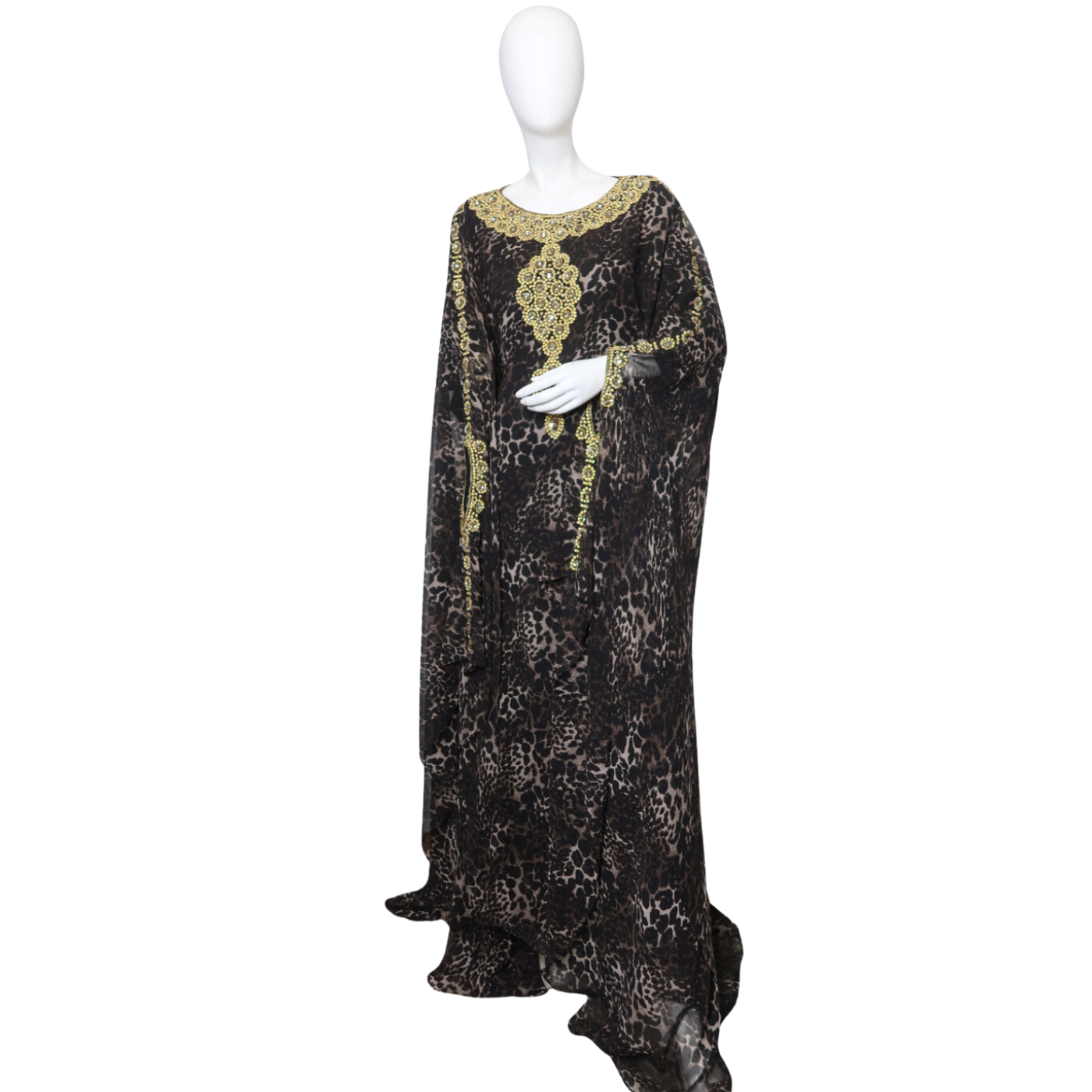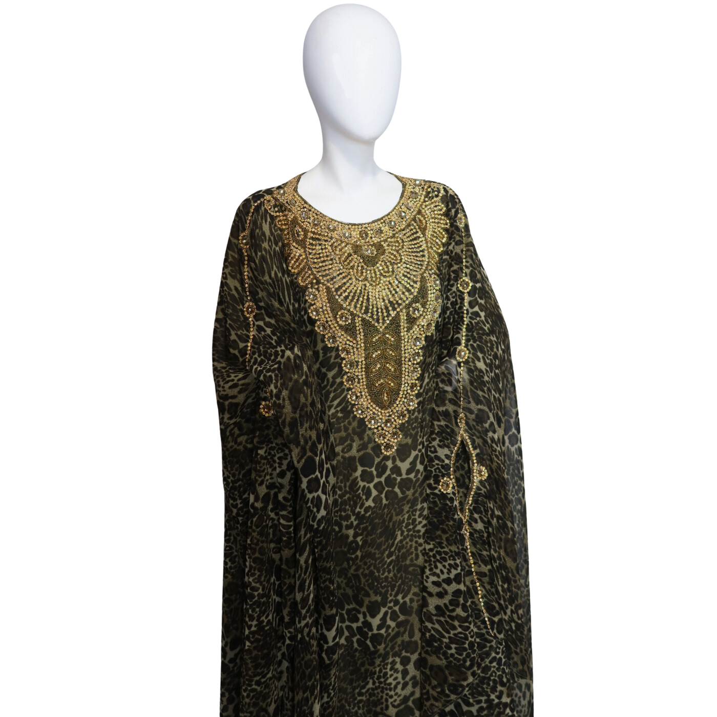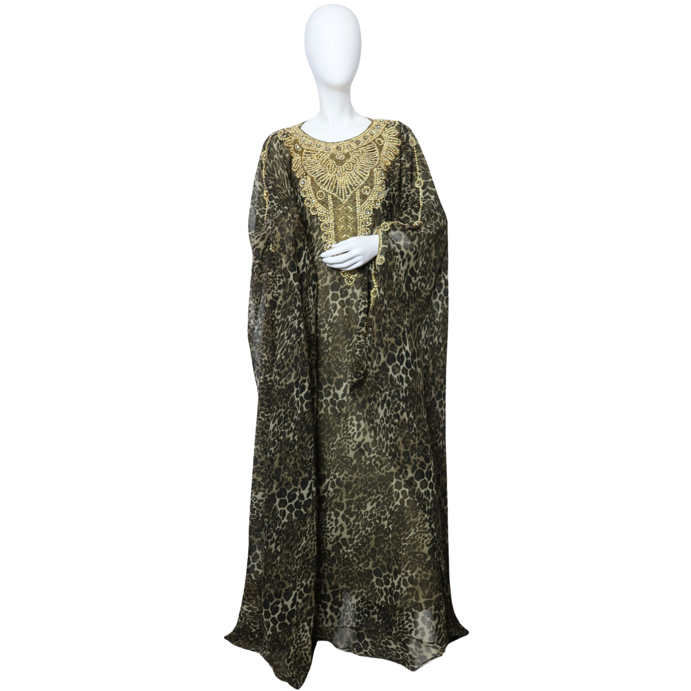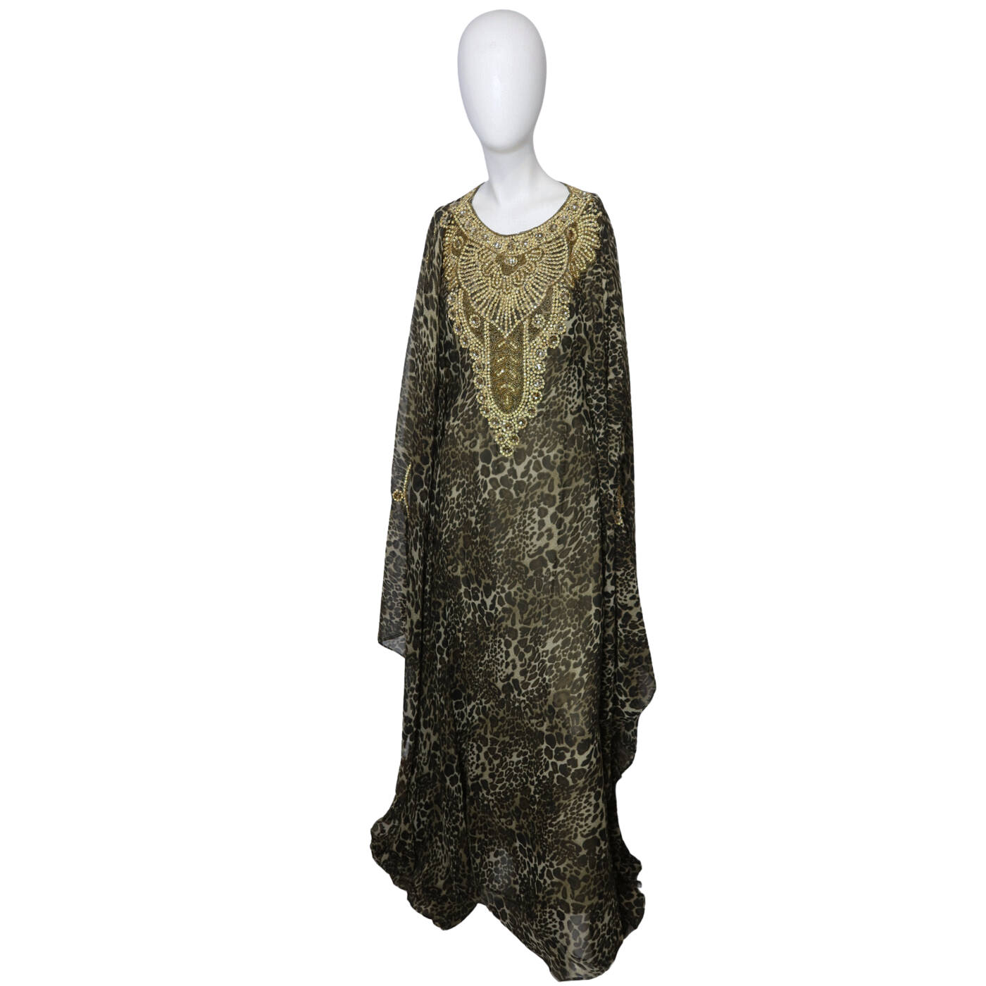 This elegant long dress features delicate beadwork and stylish arm cut-outs, combining sophistication with a modern edge. Its flowing silhouette enhances grace, making it perfect for special occasions where you want to stand out with subtle yet striking details.