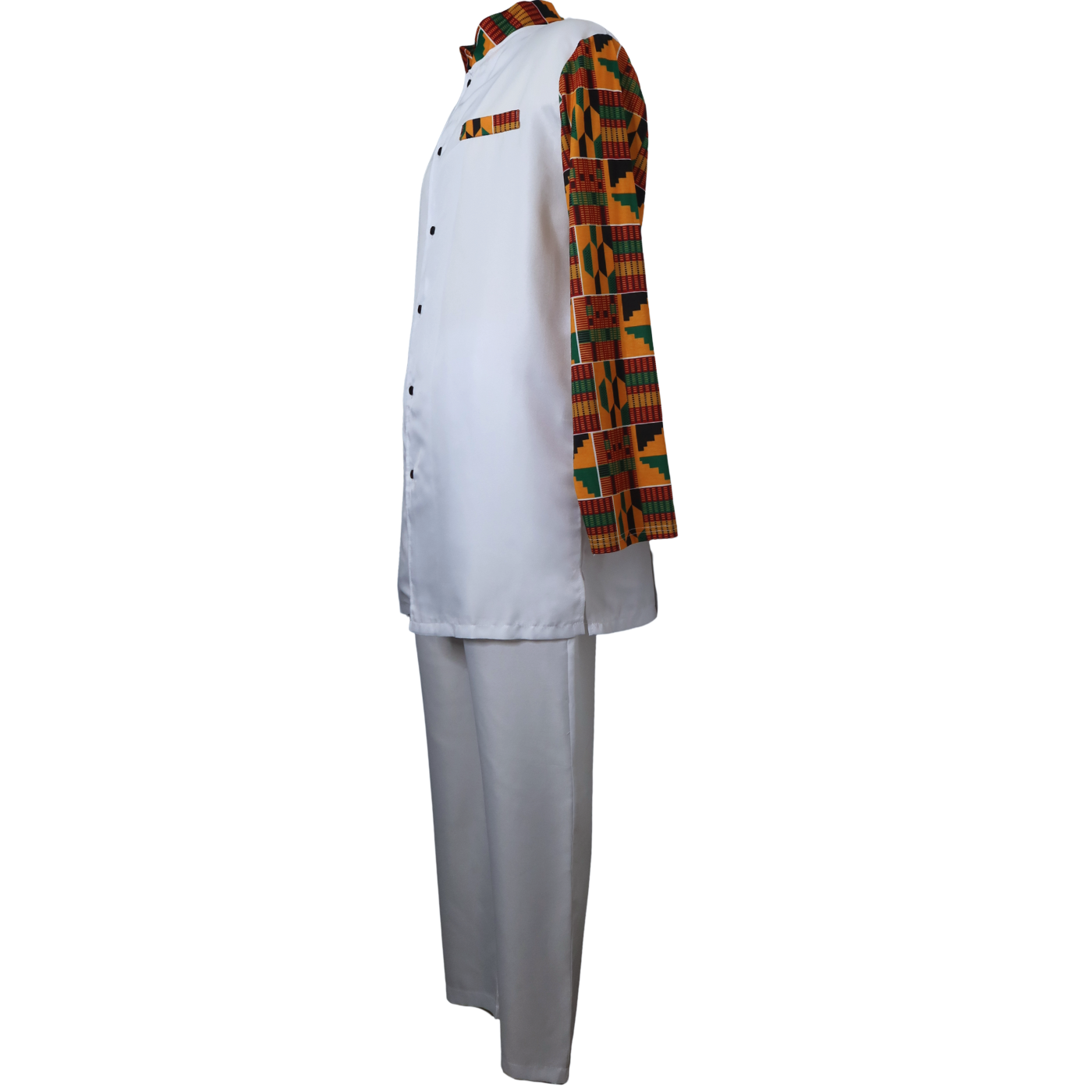Step into bold sophistication with the Head Chef pantsuit, designed for men who command attention. Featuring tribal-inspired long sleeves and sleek long pants, this ensemble blends cultural edge with modern tailoring. Perfect for making a fearless statement, it offers both style and confidence in every stitch.