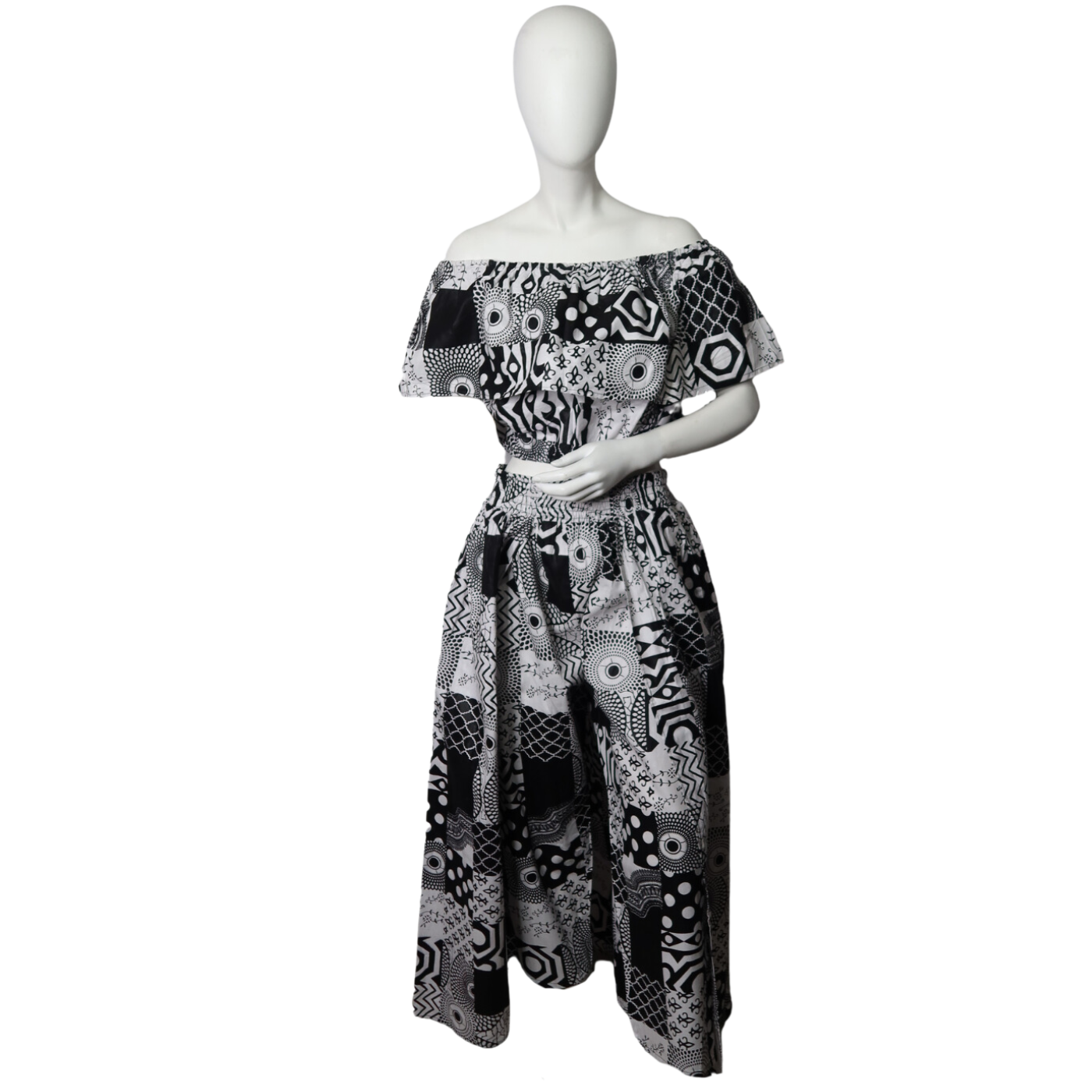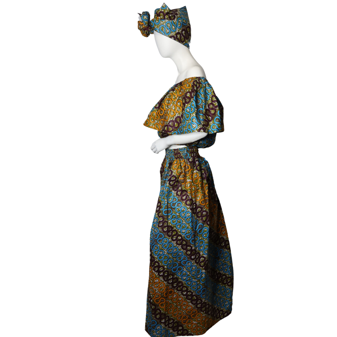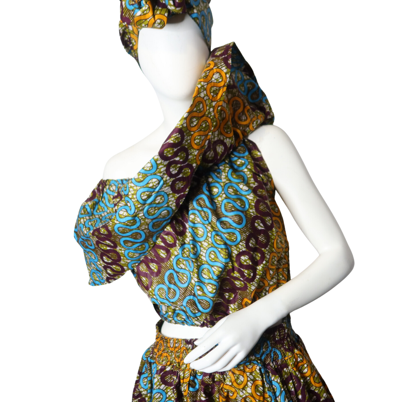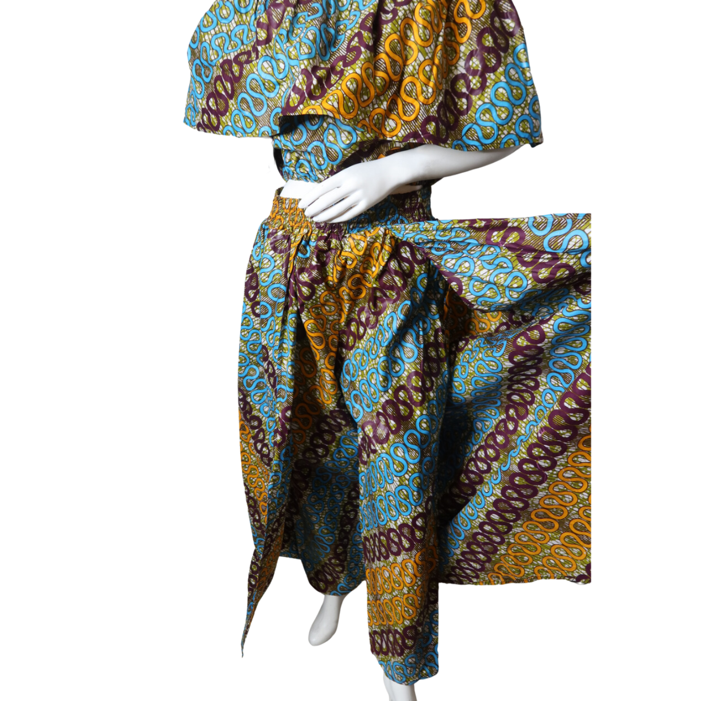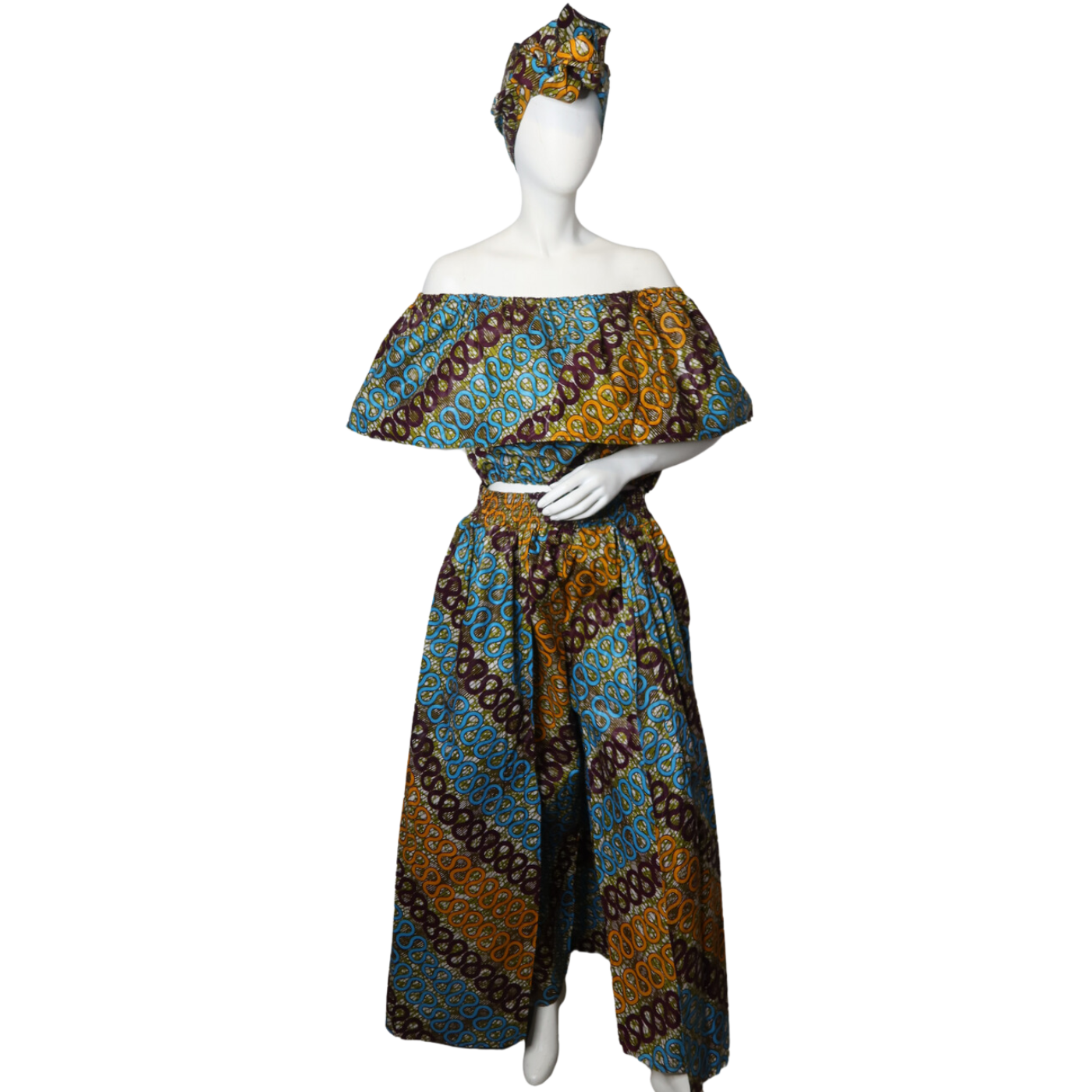 Step out in style with the Iga 2 Piece Set, featuring a playful blend of a head scarf, pant skirt mix, and an off-the-shoulder top. This fun and flirty ensemble lets you express your unique vibe while staying comfortable and chic. Perfect for sunny days or casual outings, it’s a fresh twist on effortless fashion.