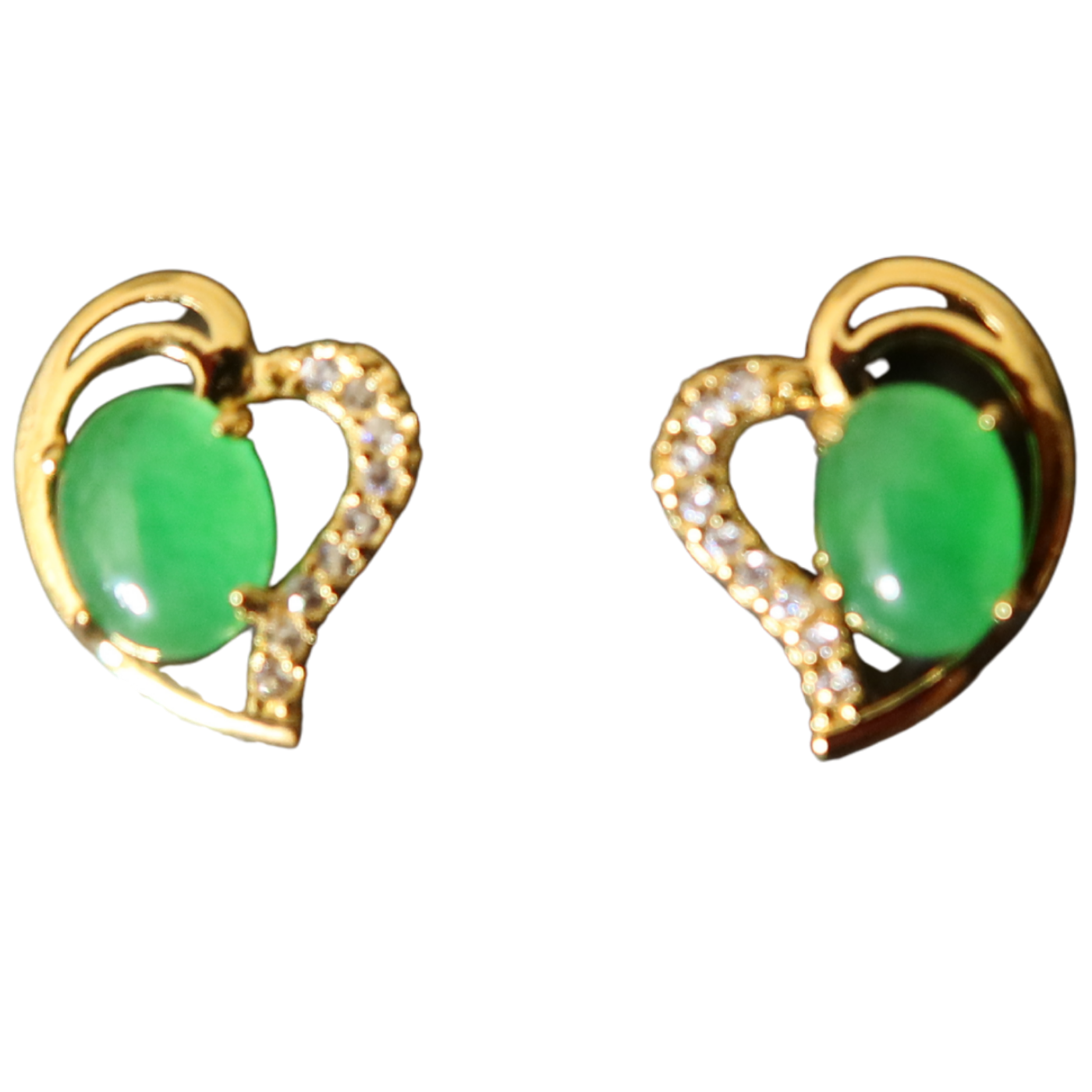 Elegant heart-shaped earrings featuring a striking green stone centerpiece. These timeless pieces combine romantic design with natural beauty. Lightweight and comfortable for all-day styling.