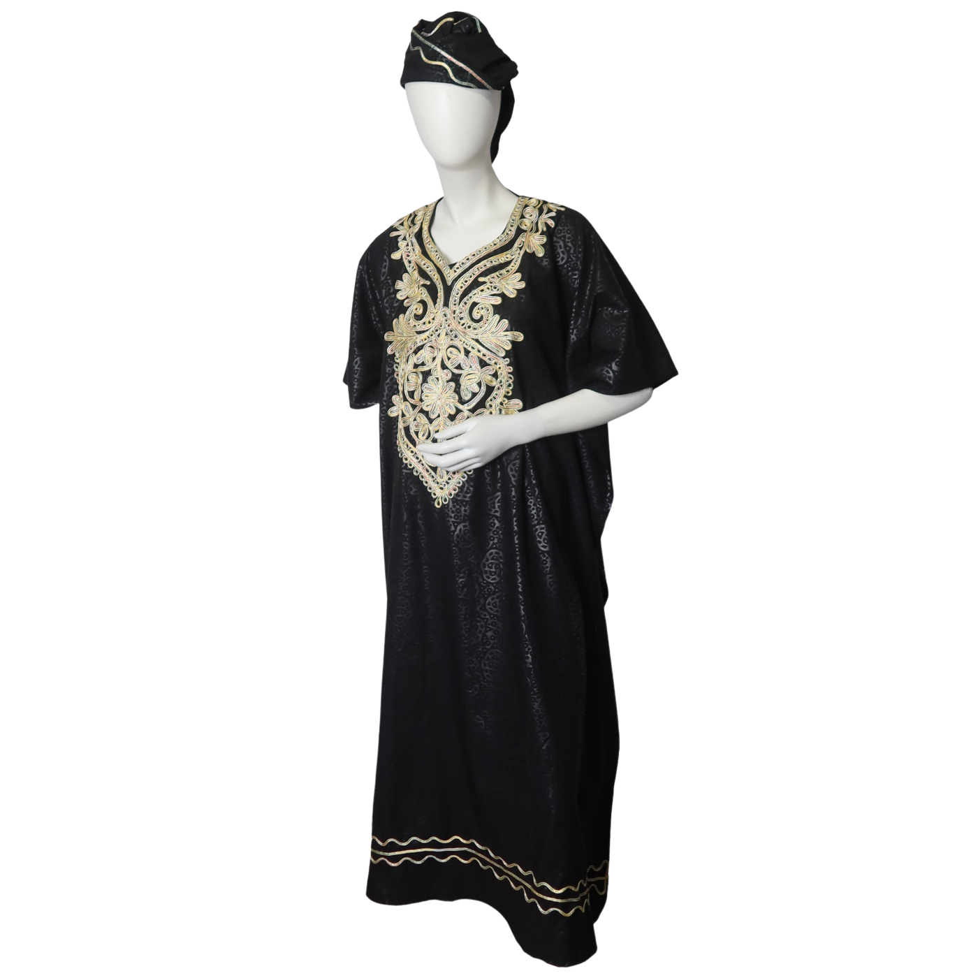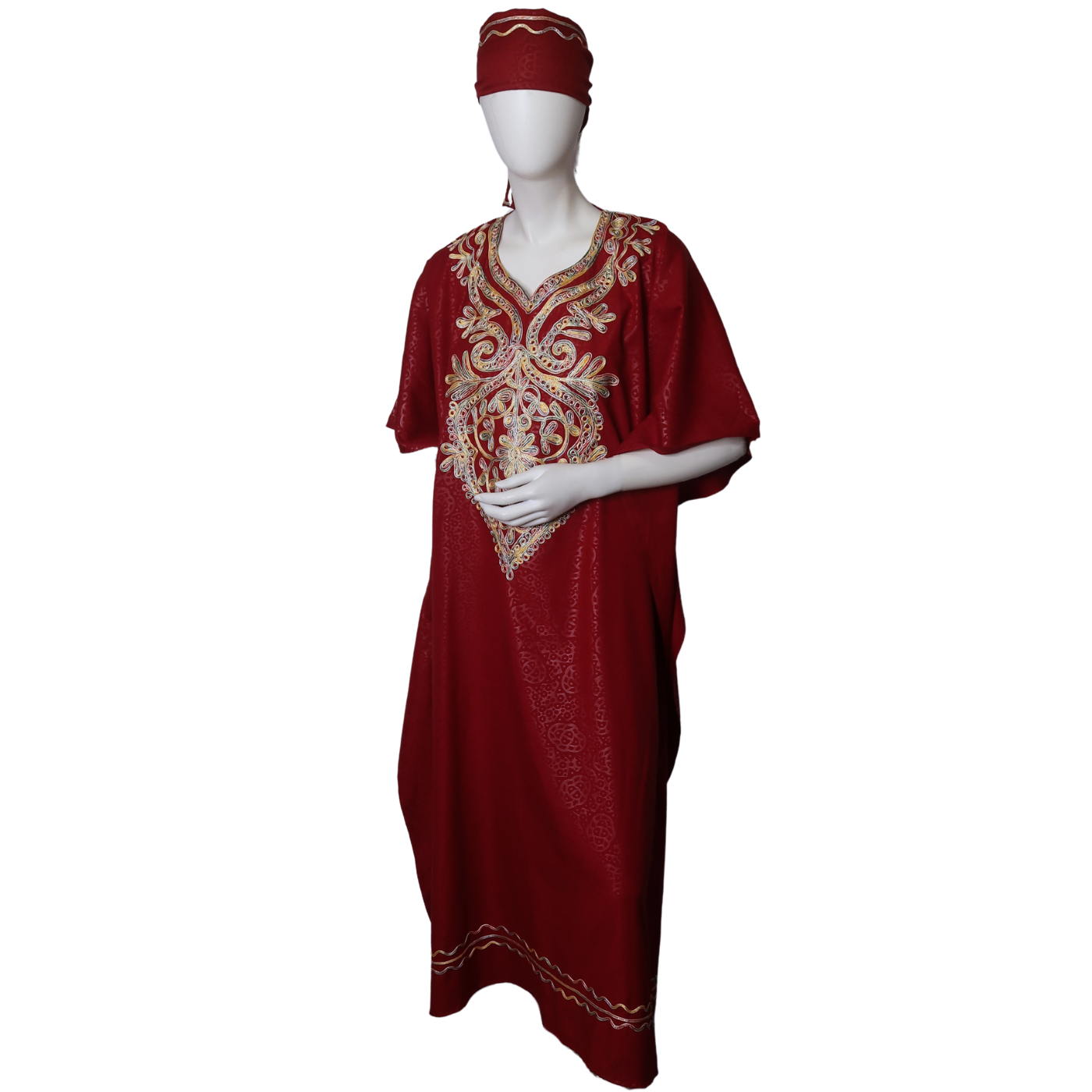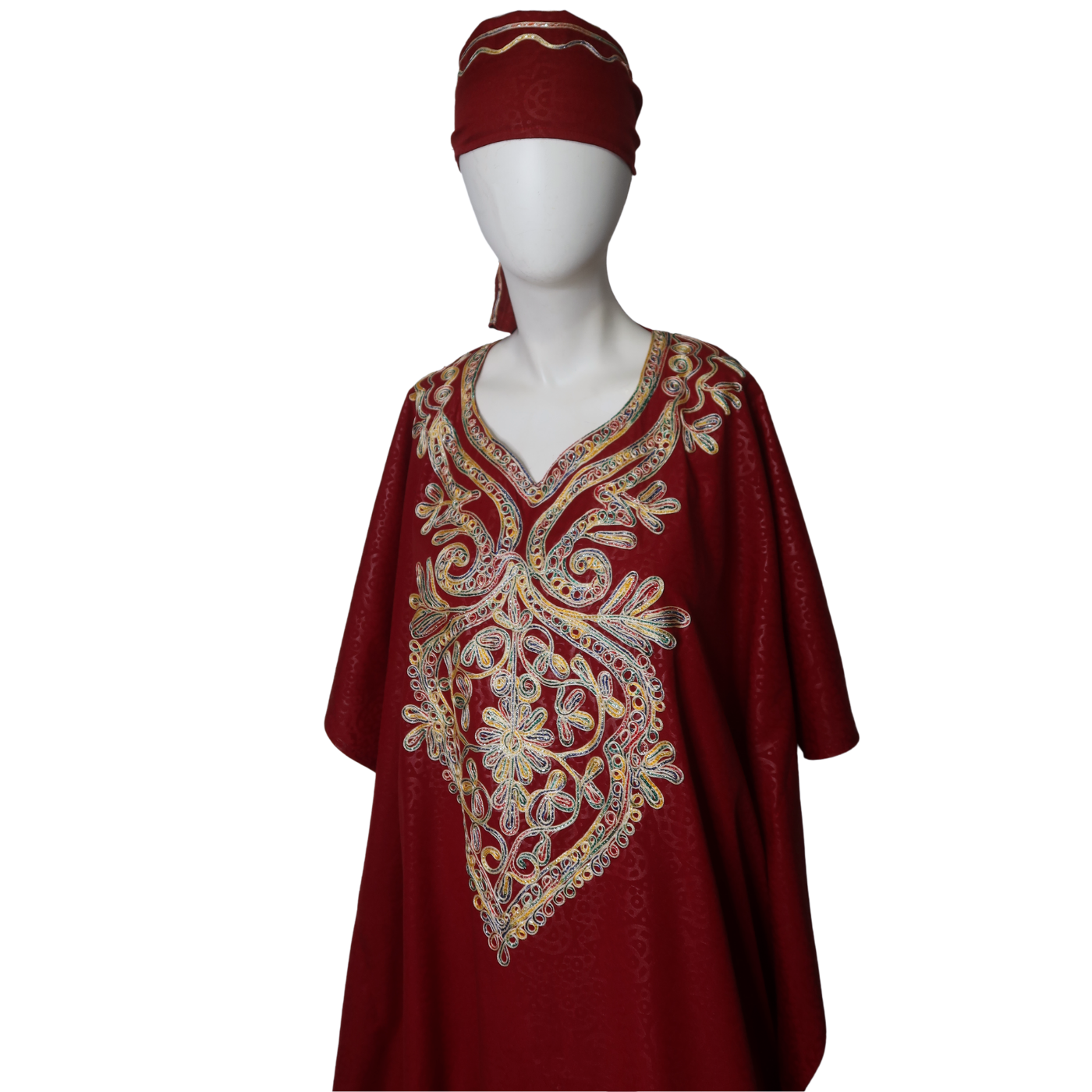 The Kelor ensemble features a finely embroidered dress paired with a coordinating head scarf, embodying cultural heritage through exquisite craftsmanship. This set offers a harmonious blend of tradition and style, perfect for celebrating meaningful moments with elegance.