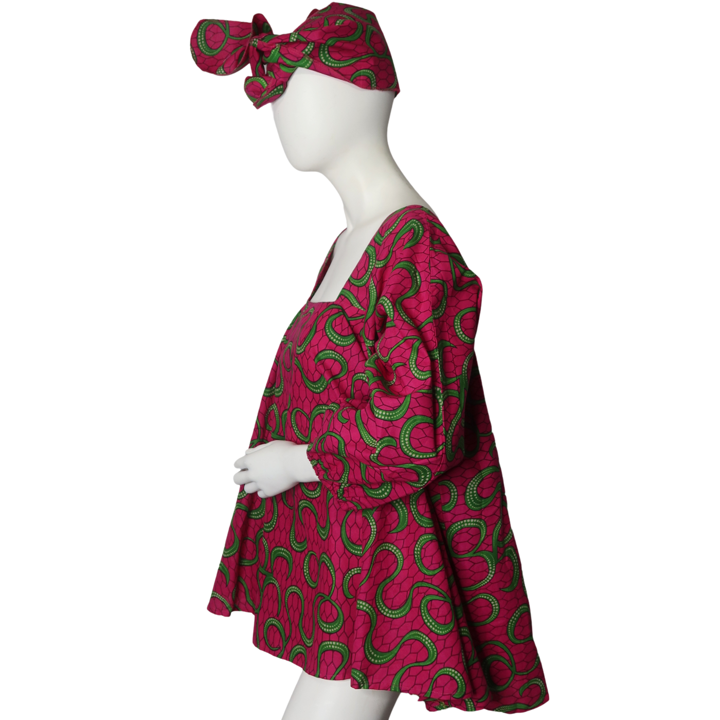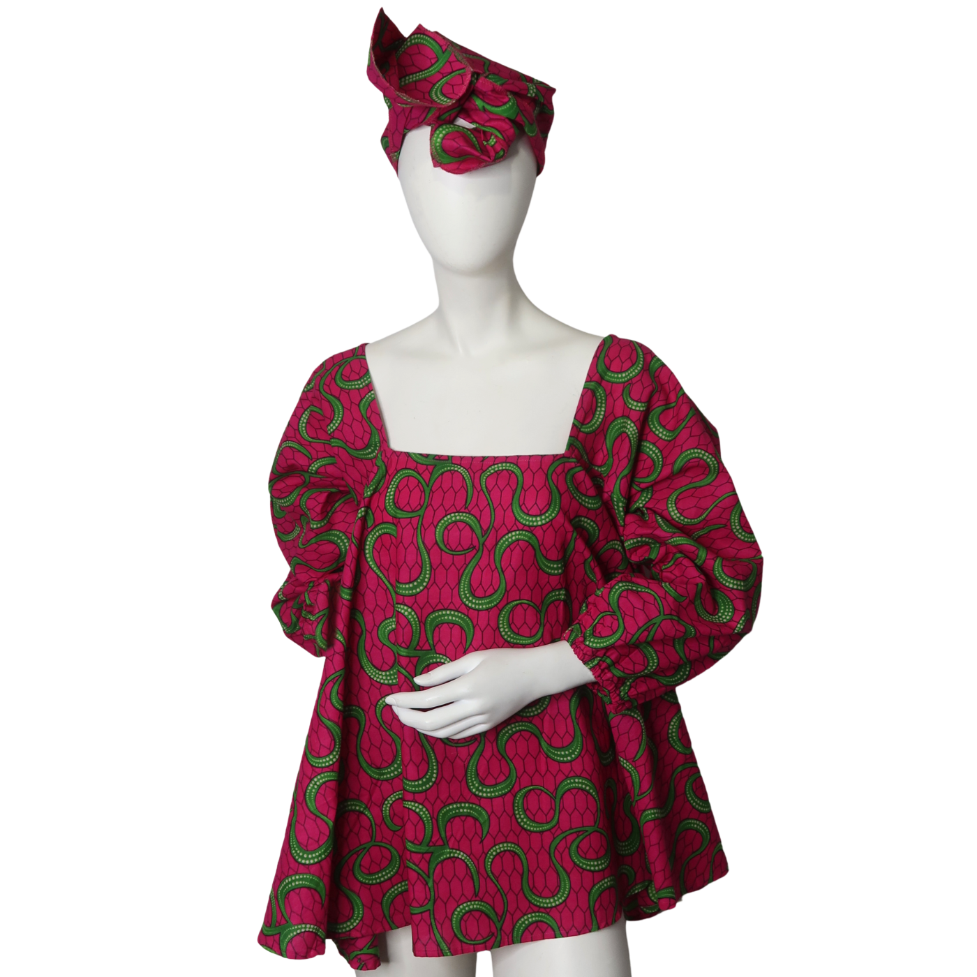 The Kenya top catches you off guard with its unique blend of a head scarf and cuffed sleeves, creating a look that’s both unexpected and stylish.