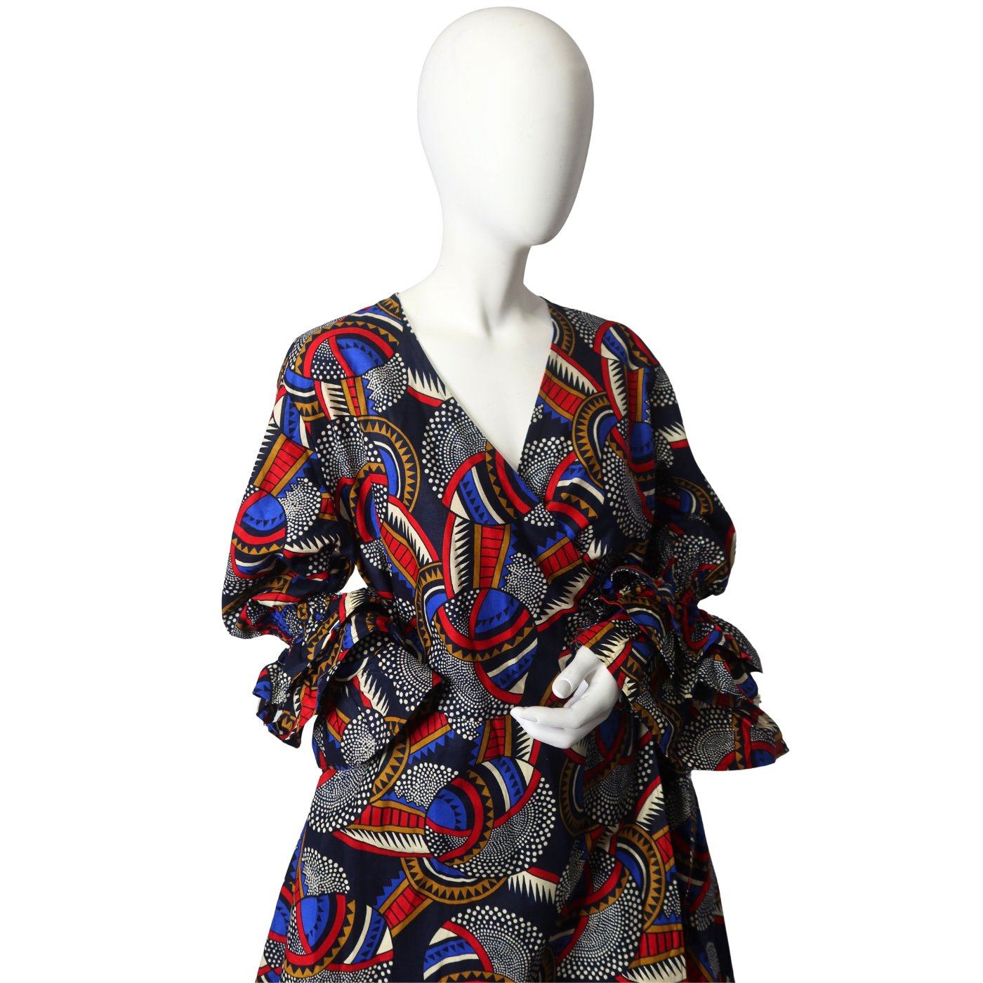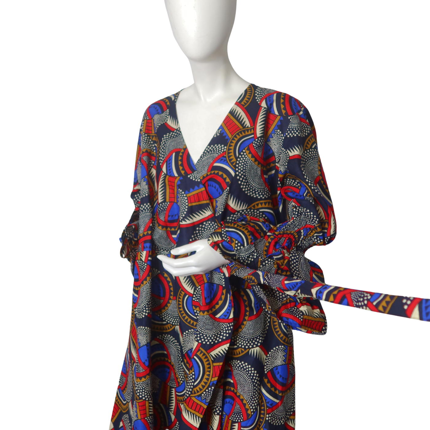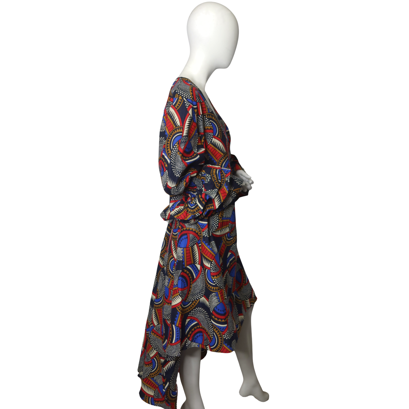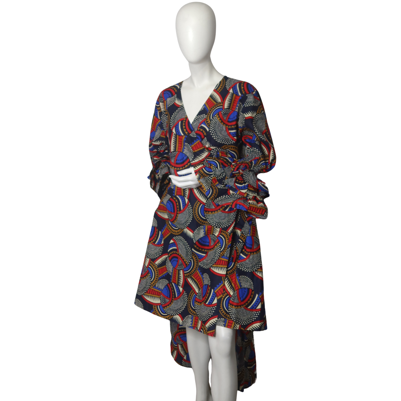 The Olyana Crossbody wrap dress, featuring a flattering high-low hem and elegant long sleeves. This stylish piece is perfect for day-to-night wear.