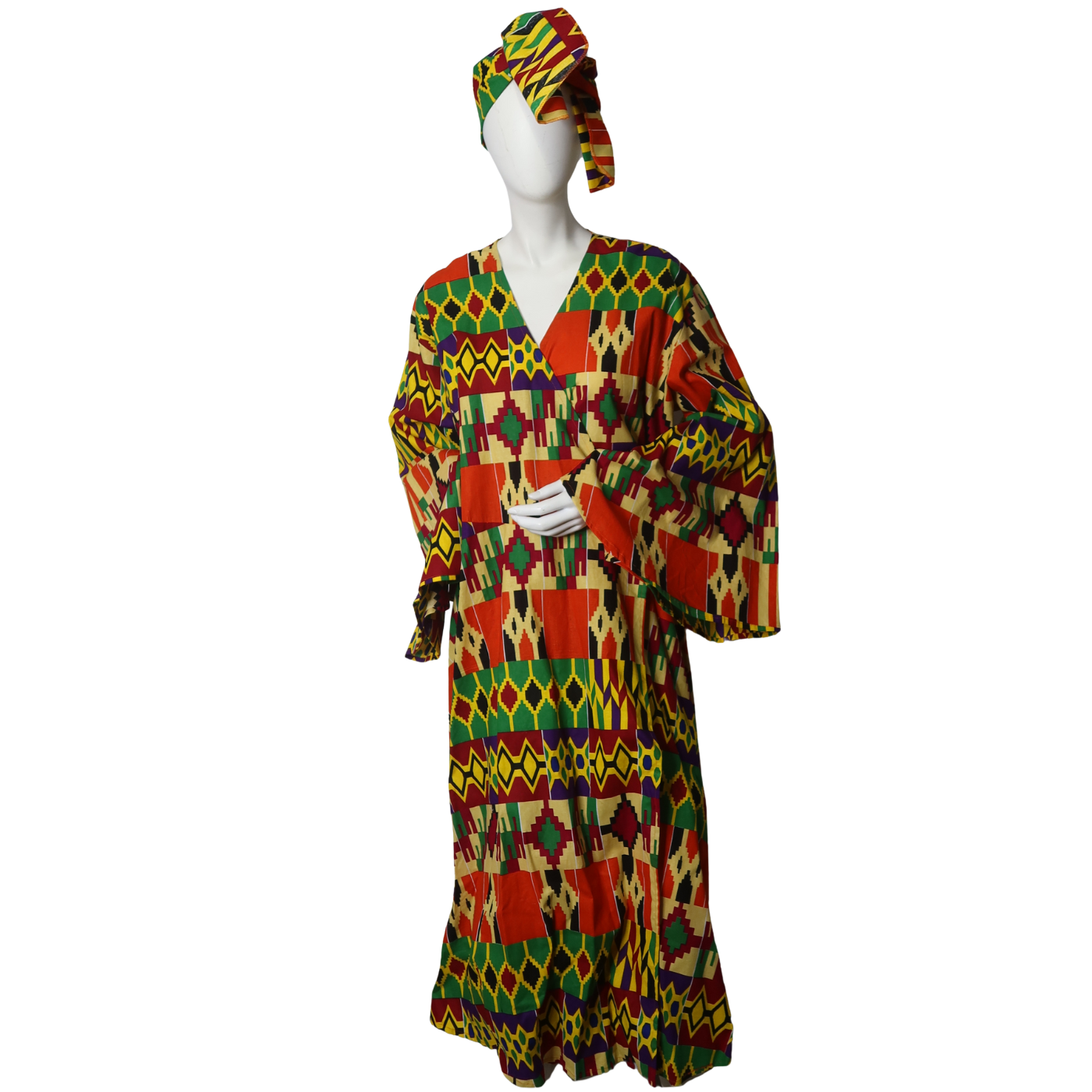 The Picasso wrap dress combines graceful long flow sleeves with a flattering silhouette that enhances your natural shape. Complete the look with the coordinating head scarf for a stylish, polished ensemble. Perfect for day or evening wear, this set offers both comfort and elegance, making it a versatile addition to your wardrobe. Embrace effortless sophistication with Picasso.