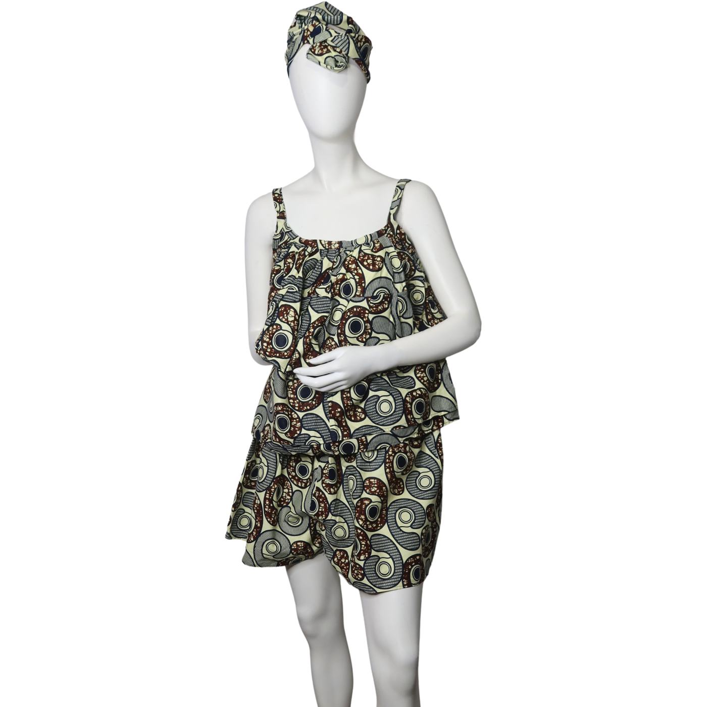 The Santana pantsuit features a meticulously tailored pants paired with a sleek spaghetti strap top, creating a harmonious blend of structured sophistication and delicate elegance.