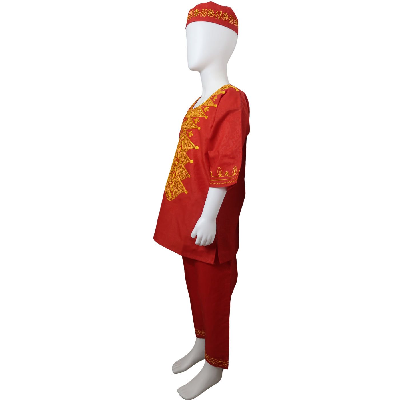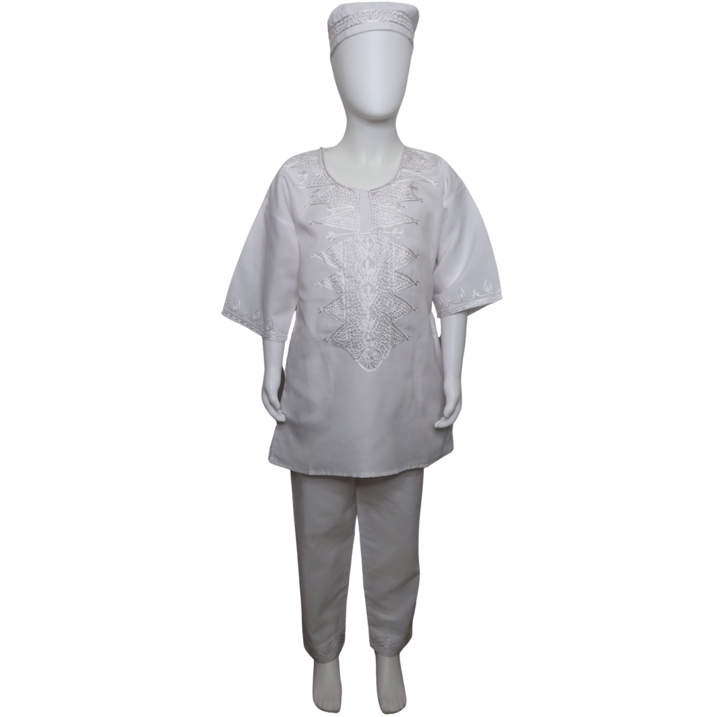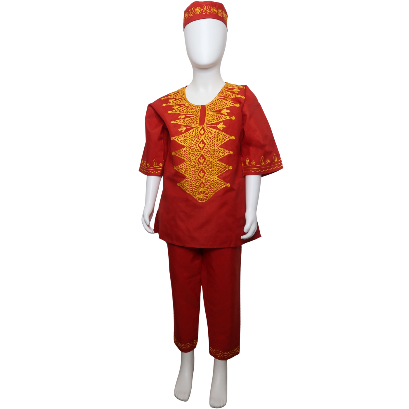 The Tribal Forest kids pantsuit is a perfect blend of comfort and style, designed to keep your child looking sharp and feeling free to move. This set includes a matching hat that adds a playful and distinctive touch, making it ideal for special occasions.