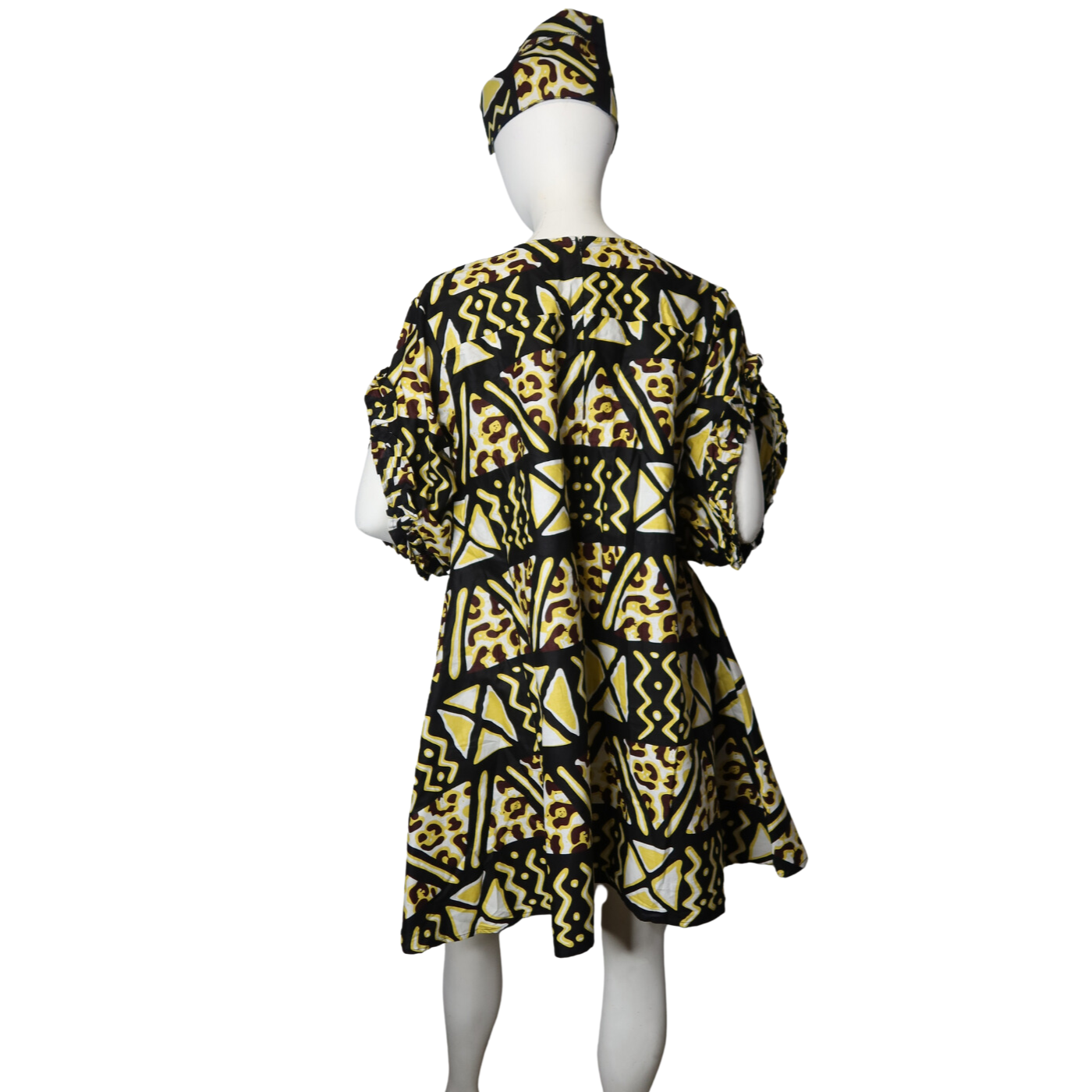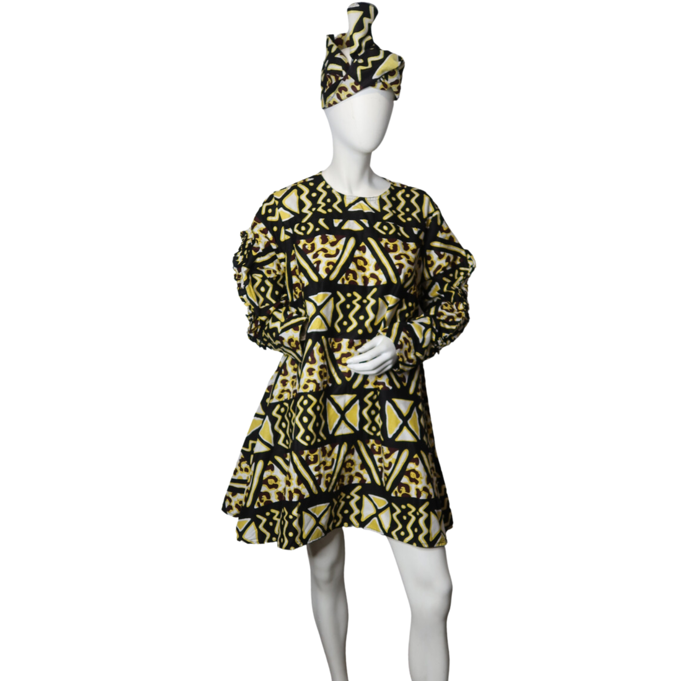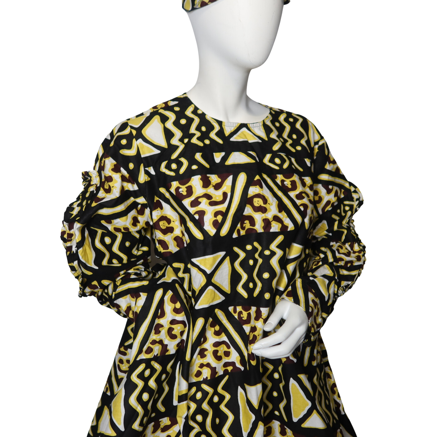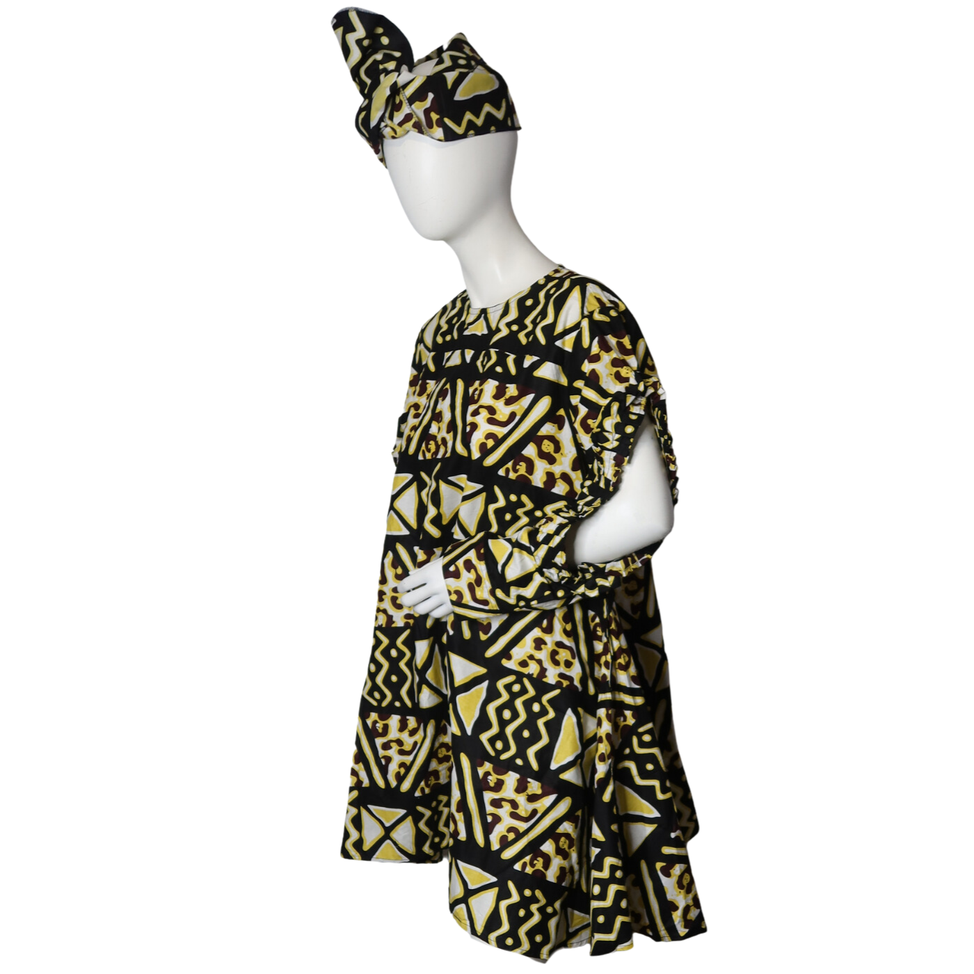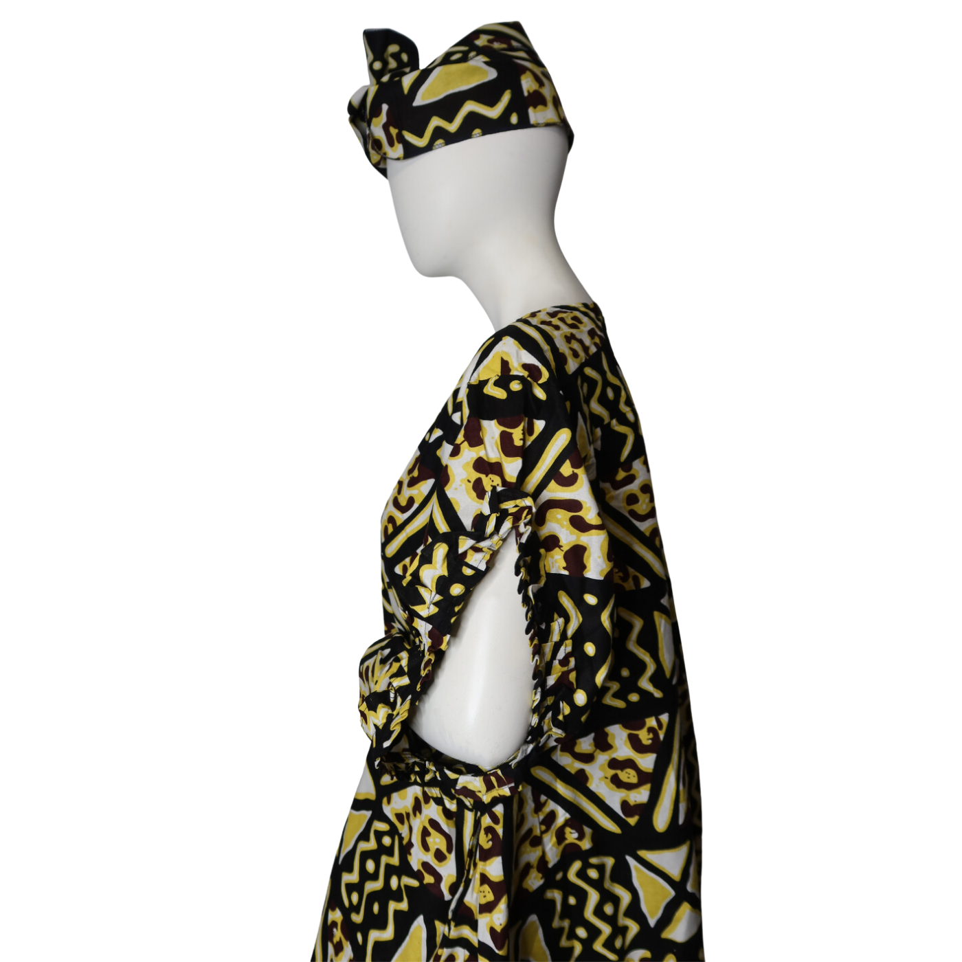 Step into bold elegance with the Tulip Cut dress. Featuring a striking arm cut-out and a matching head wrap, this daring ensemble commands attention while celebrating your confident style. Perfect for making a memorable statement at any event.