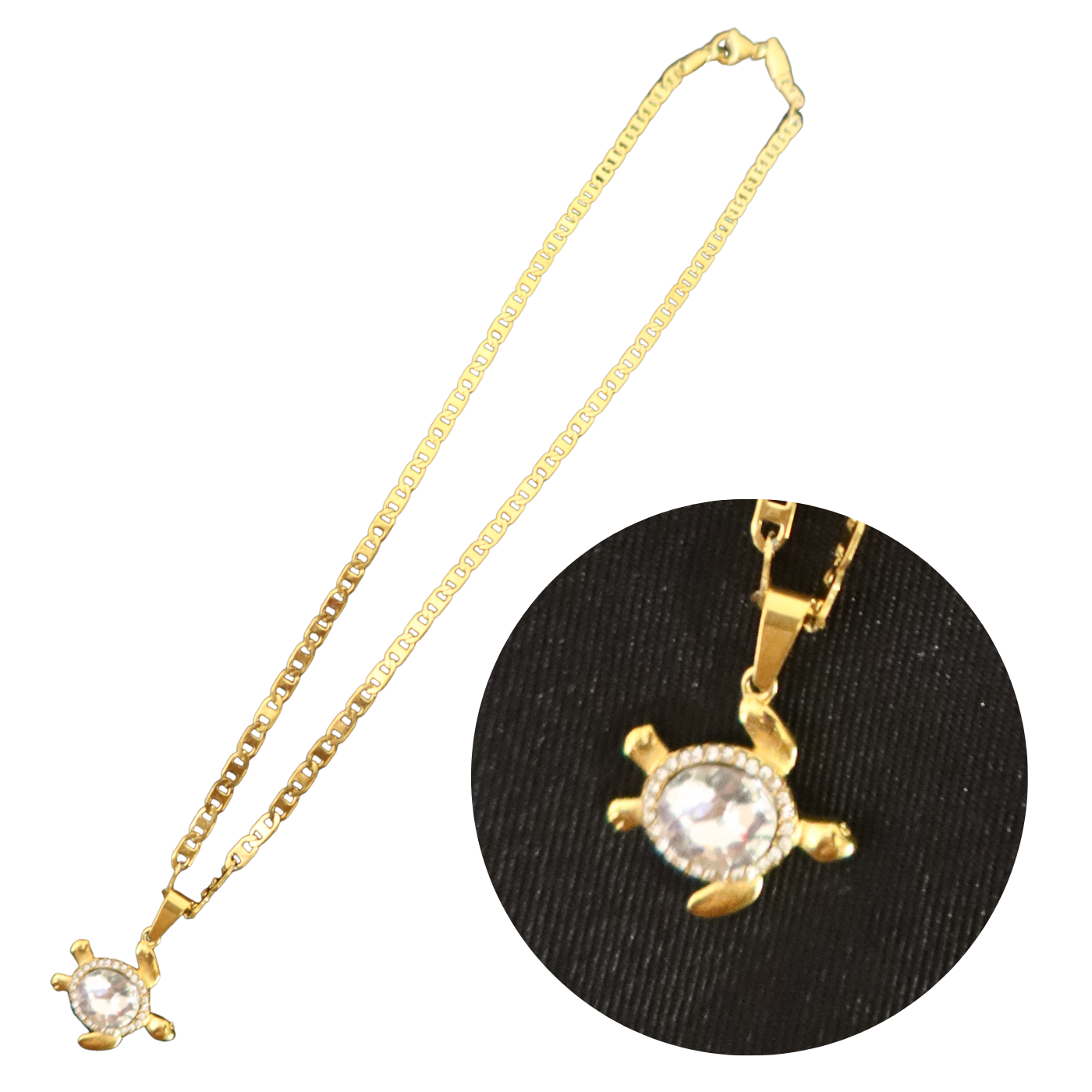 This turtle-shaped necklace features a sparkling diamond as the animal’s shell, bringing a touch of brilliance to its charming design. The delicate craftsmanship highlights the turtle’s graceful form, symbolizing longevity, protection, and perseverance. Perfect as a playful yet elegant accessory.