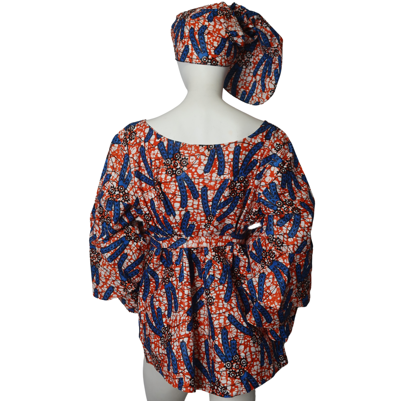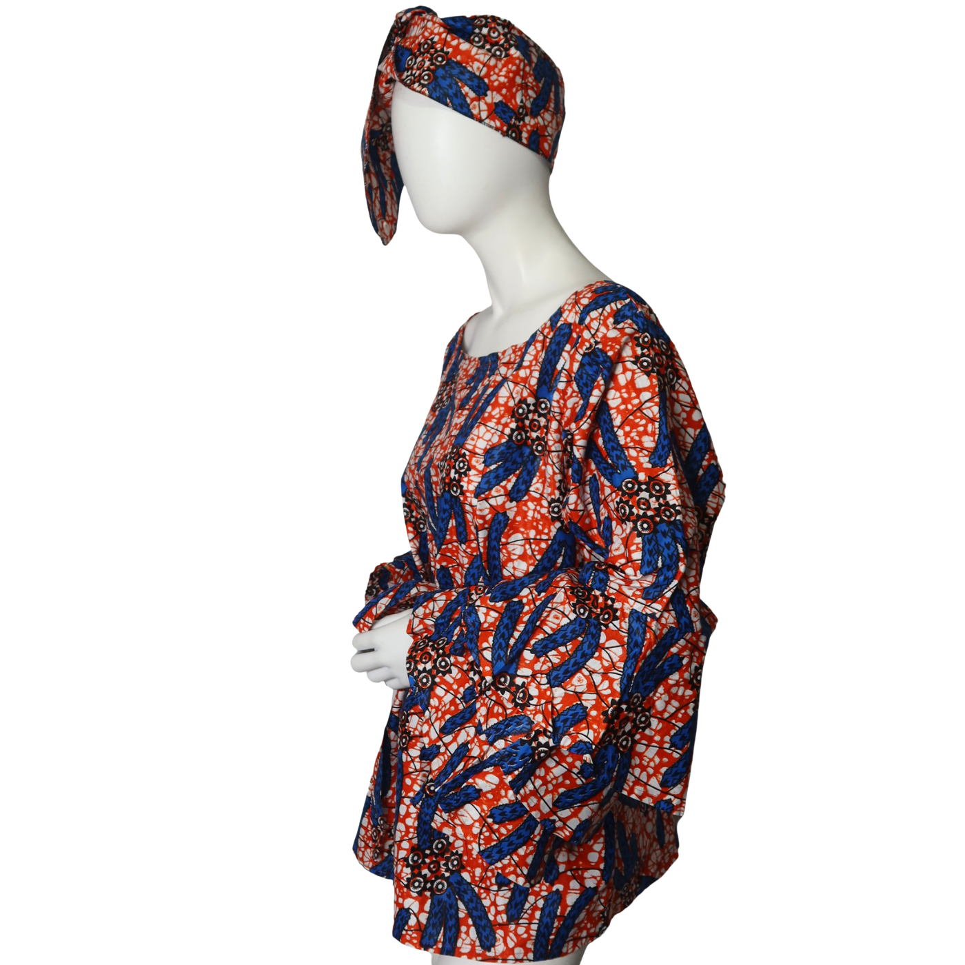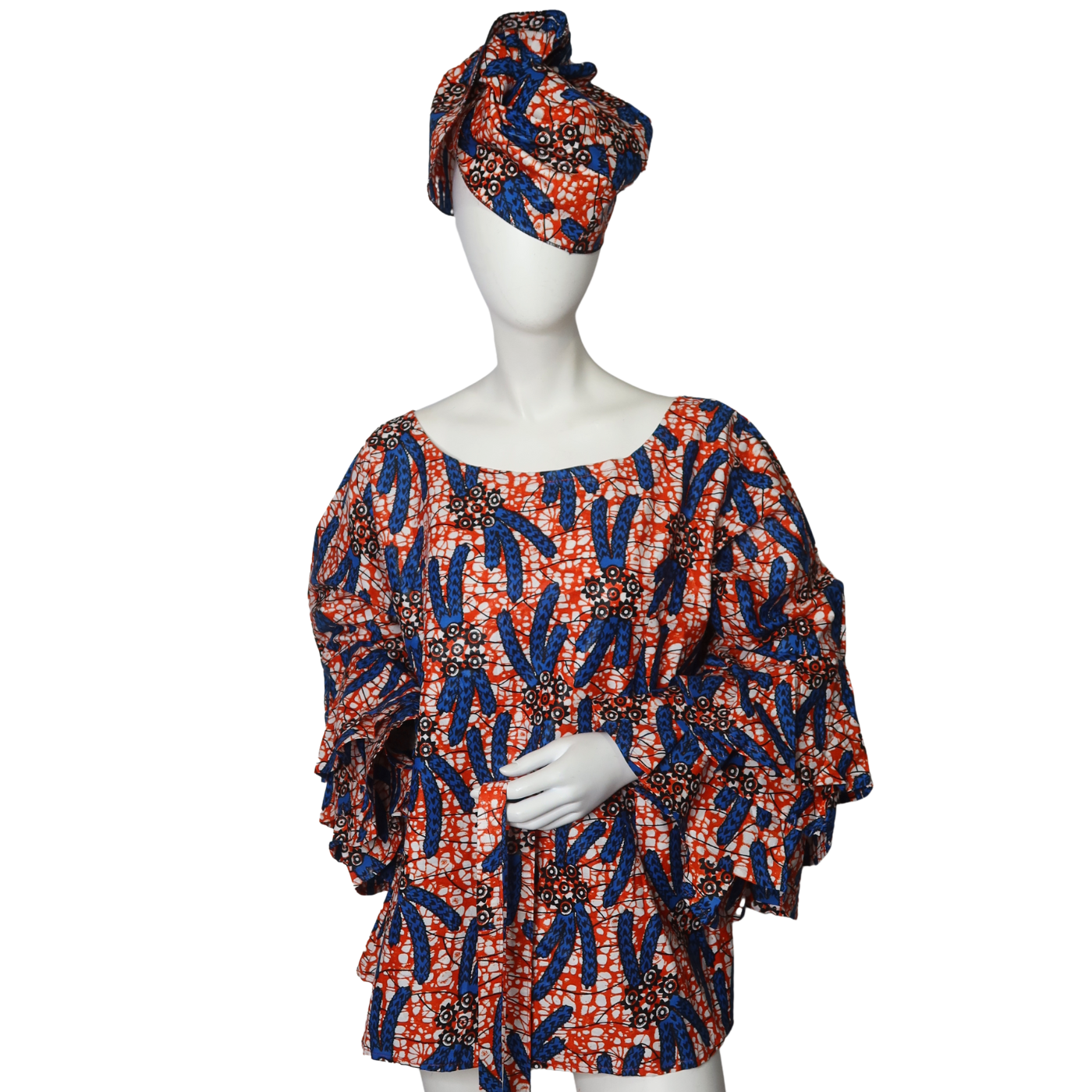 Whitta combines a layered long sleeve top, a stylish head wrap, and a coordinating belt to create a look that inspires confidence.
